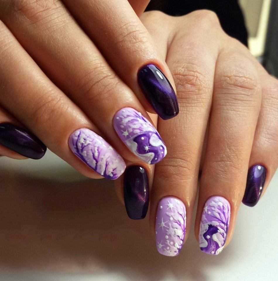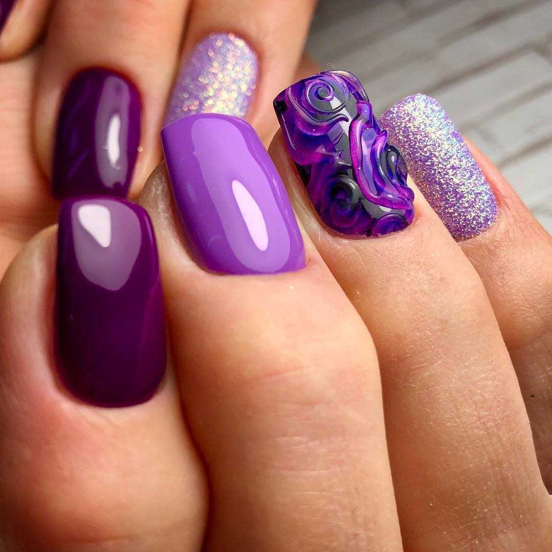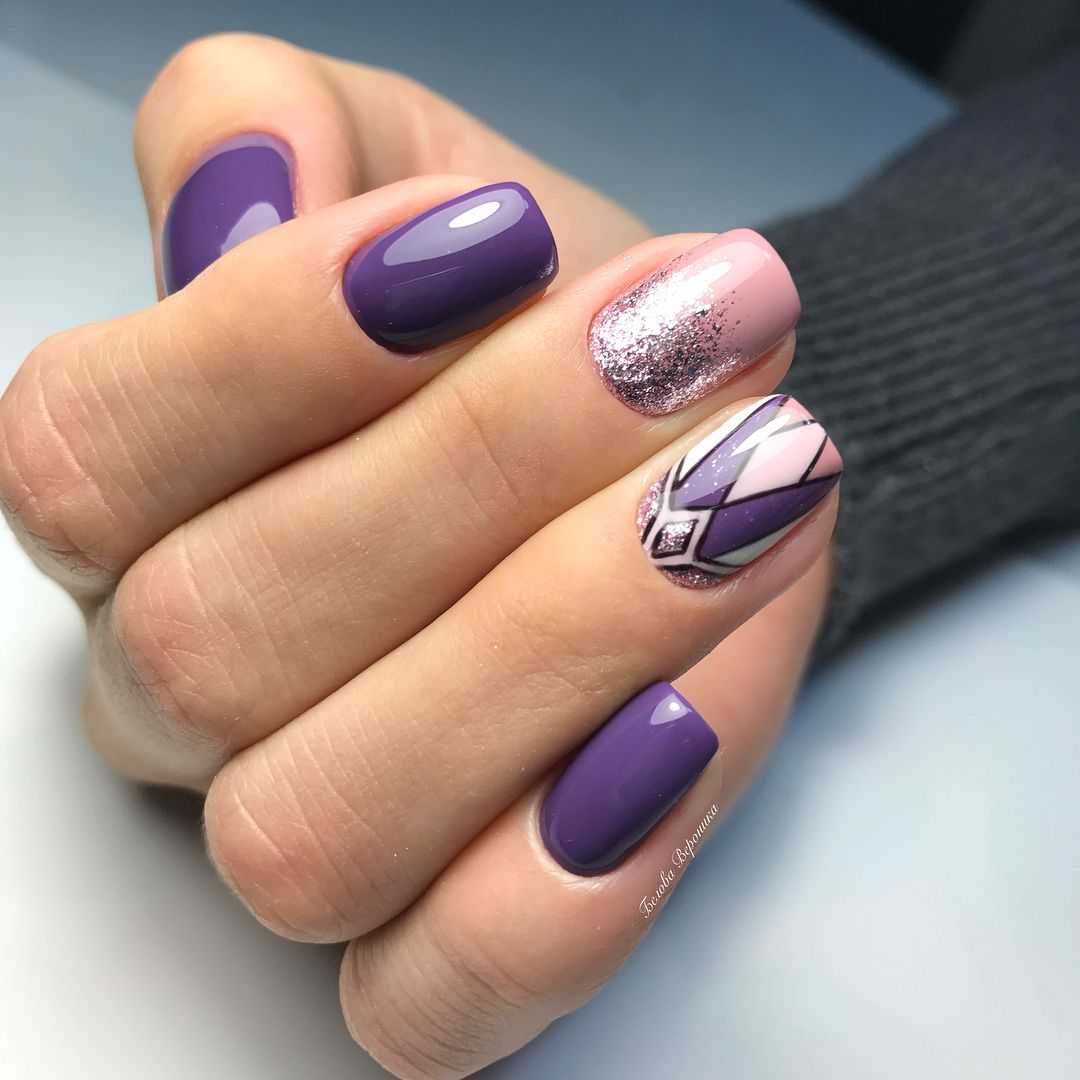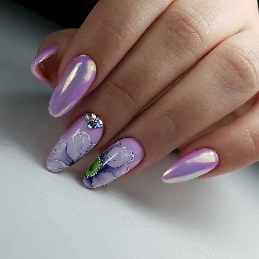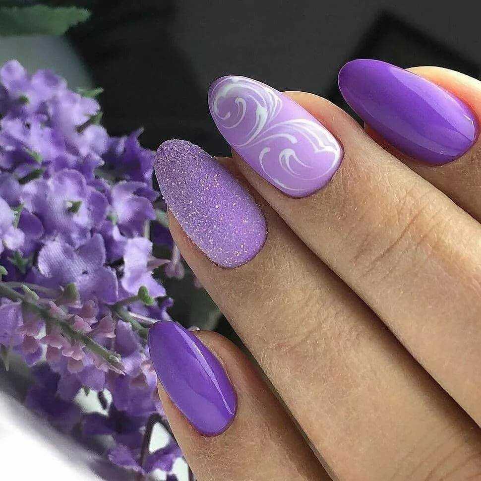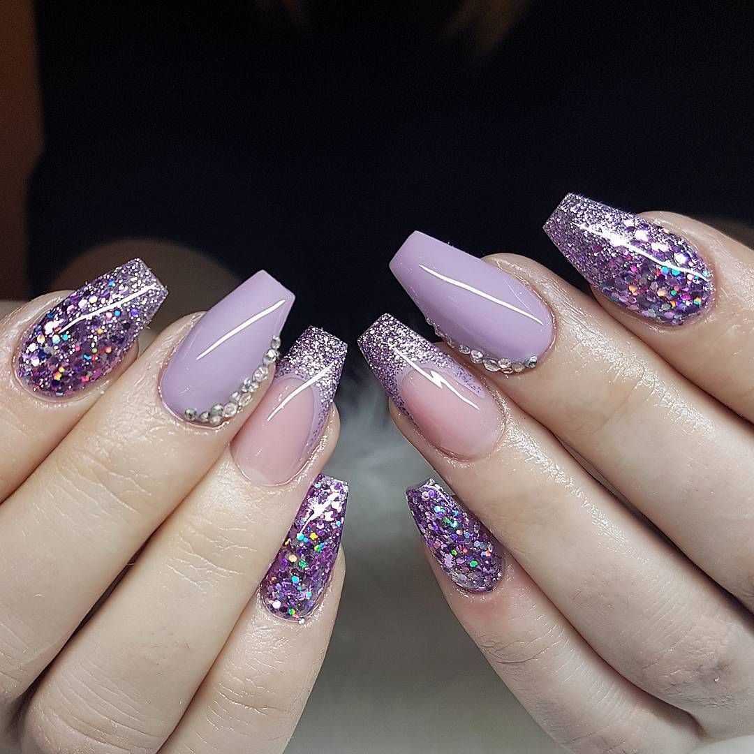 Сиреневый цвет – прекрасный выбор для современного, модного маникюра. Он отлично смотрится не только в виде однотонного покрытия, но и вместе с дизайном и россыпью блесток. Главное, чтобы всех деталей было в меру.