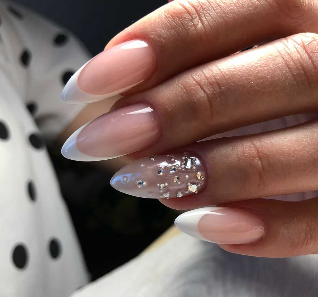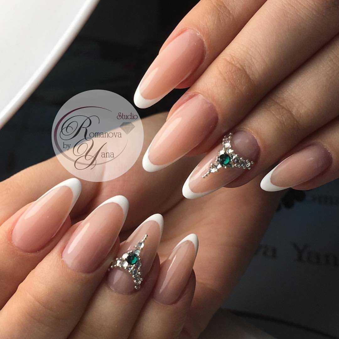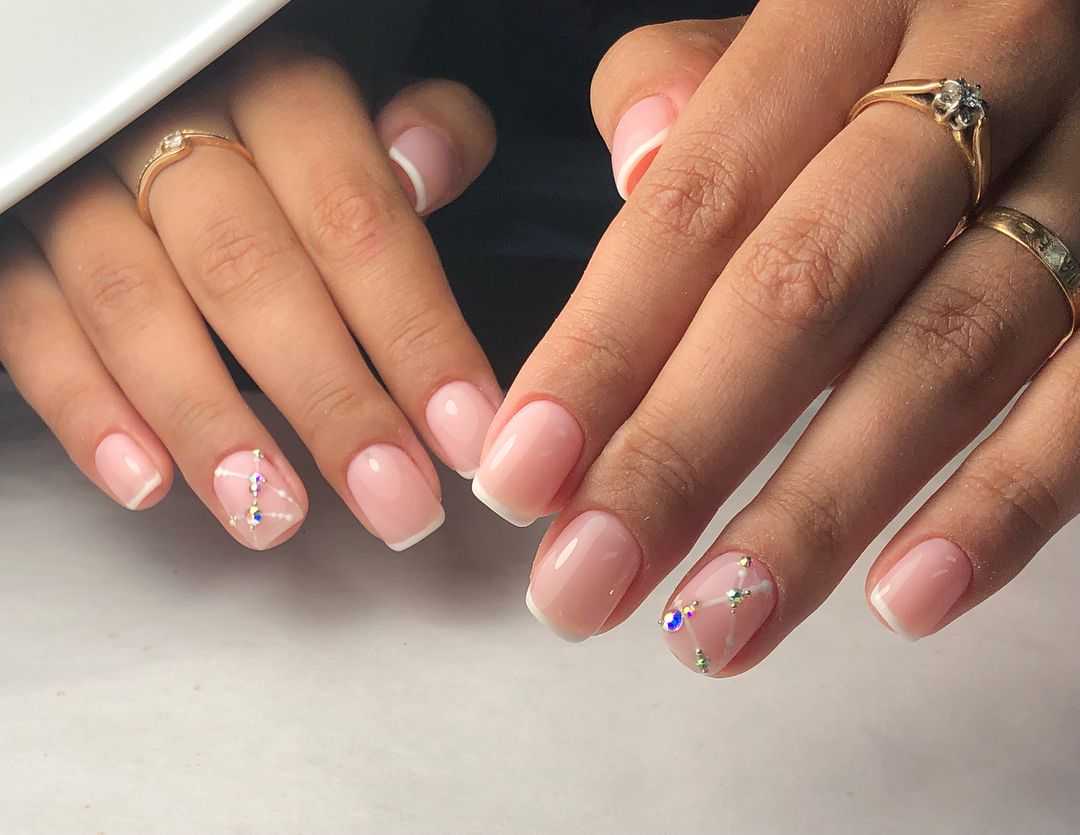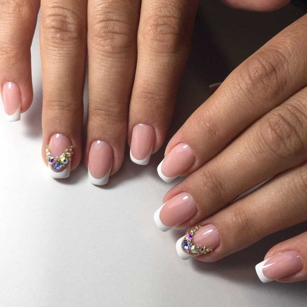 Как правило, современный бело-розовый френч так же предполагает и наличие некоторых декоративных элементов: рисунок, камни, узор, блестки, голограмму. В зависимости от ваших пожеланий, мастер способен воплотить в маникюре любую вашу фантазию. Современный френч — необычный, где ногти могут быть совершенно не похожими друг на друга.