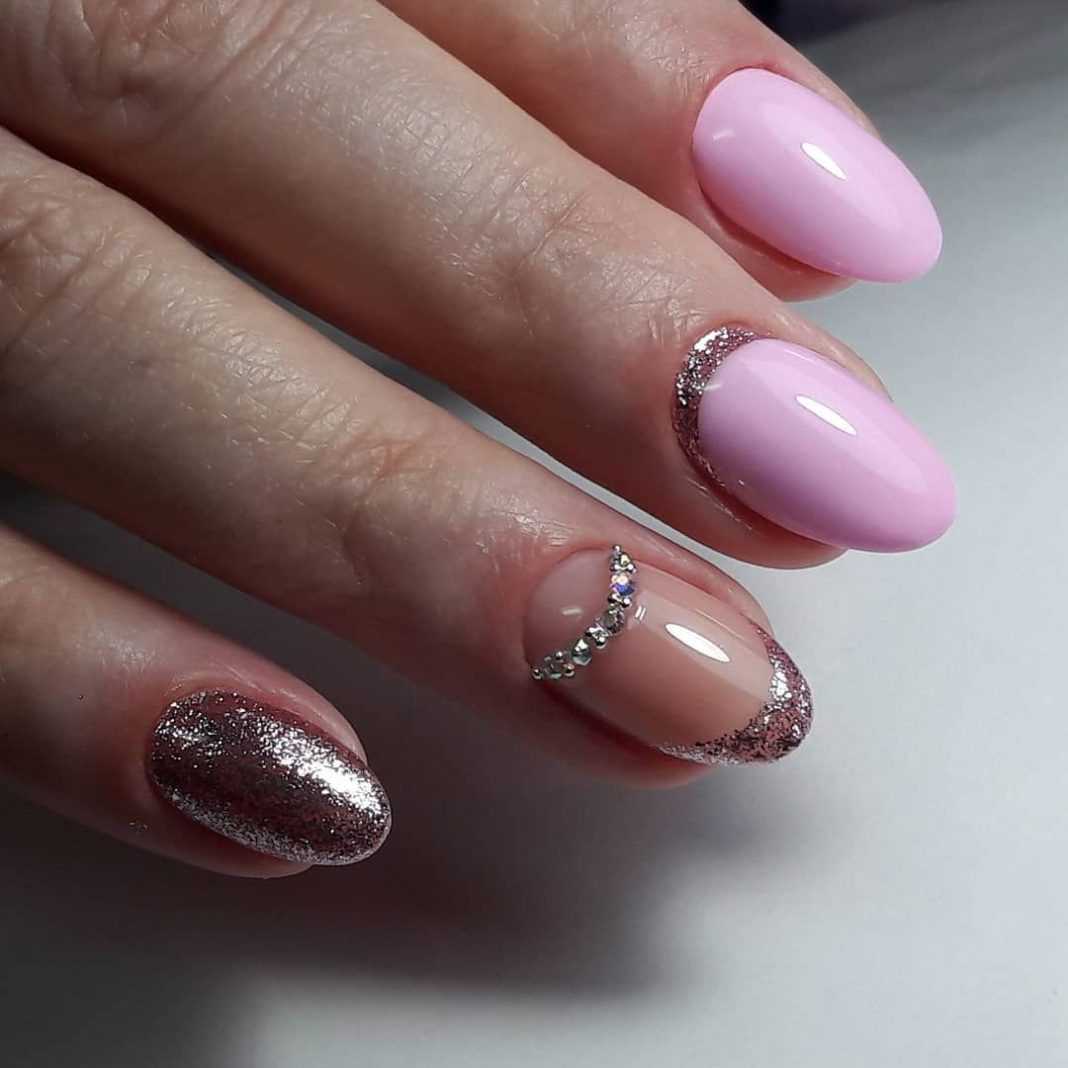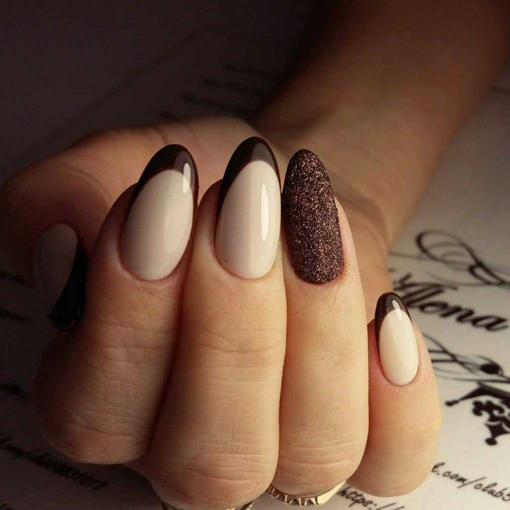 Ноготки могут быть сдержанными и спокойными или украшаться блёстками по желанию, а также красиво сочетаться с другими оттенками лака в маникюре.