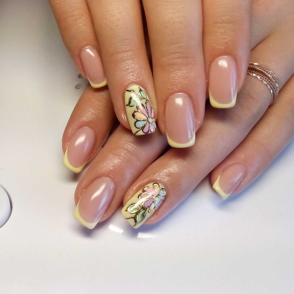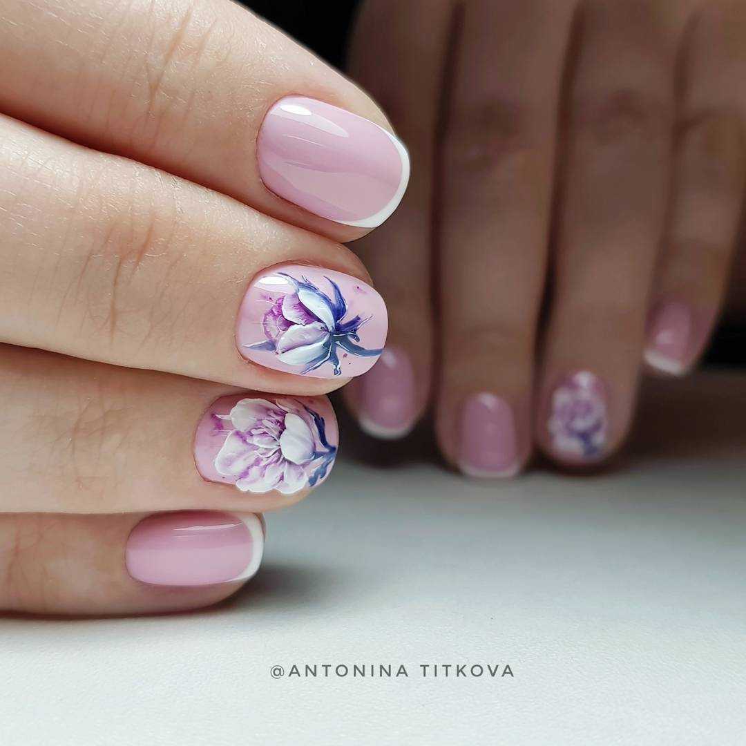 Френч с акварельным декором выглядит как произведением искусства. Такой дизайн никого не оставит равнодушным, привлечет восторженные взгляды окружающих и будет радовать вас своей красотой и изяществом.