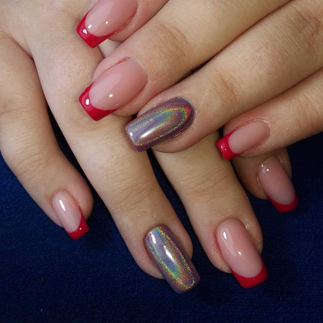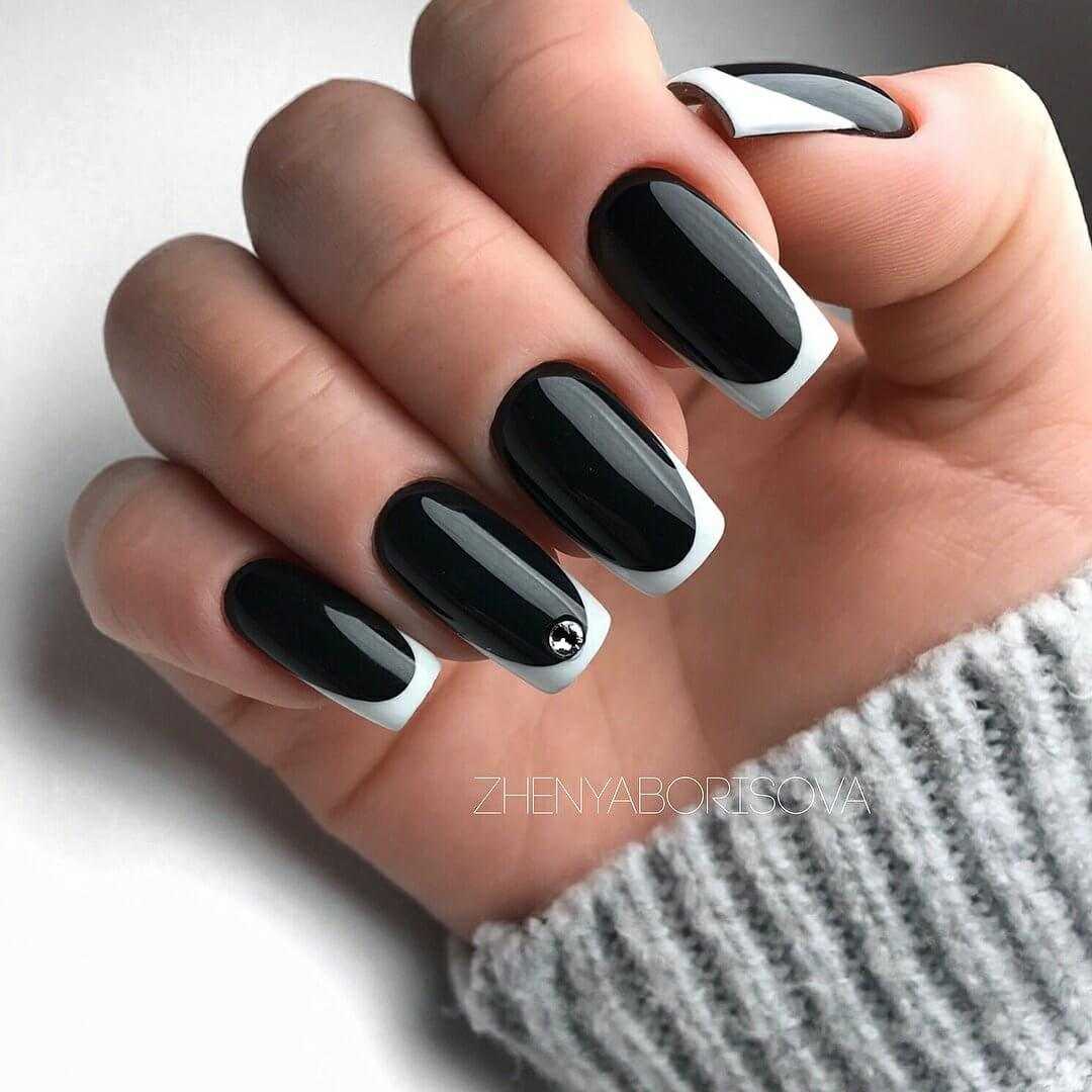 За счет столь явного контраста маникюр получается насыщенным, в меру ярким. Наиболее часто его выбирают для различных праздников.