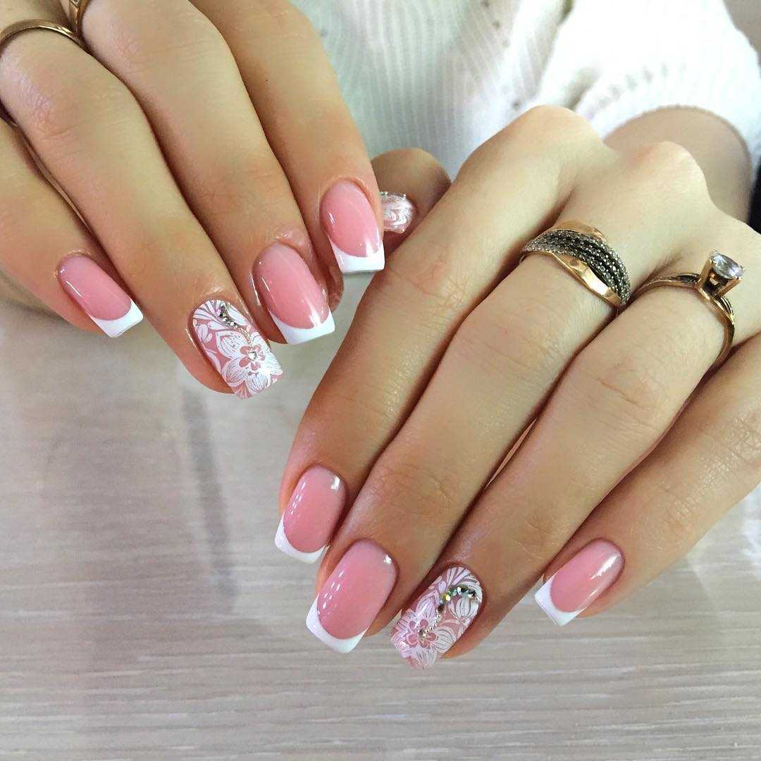 Самой большой популярностью пользуется французский маникюр в сочетании с нежными розовыми оттенками. Как правило, розовый лак служит основой для создания френча и все рисунки и белые полосы рисуются поверх него. Такой вид френча является необычайно женственным, нежным и красивым за счет правильного и плавного сочетания цветов.