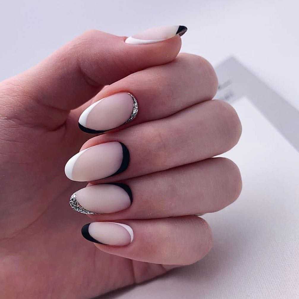 Черно-белый французский маникюр с рисунком