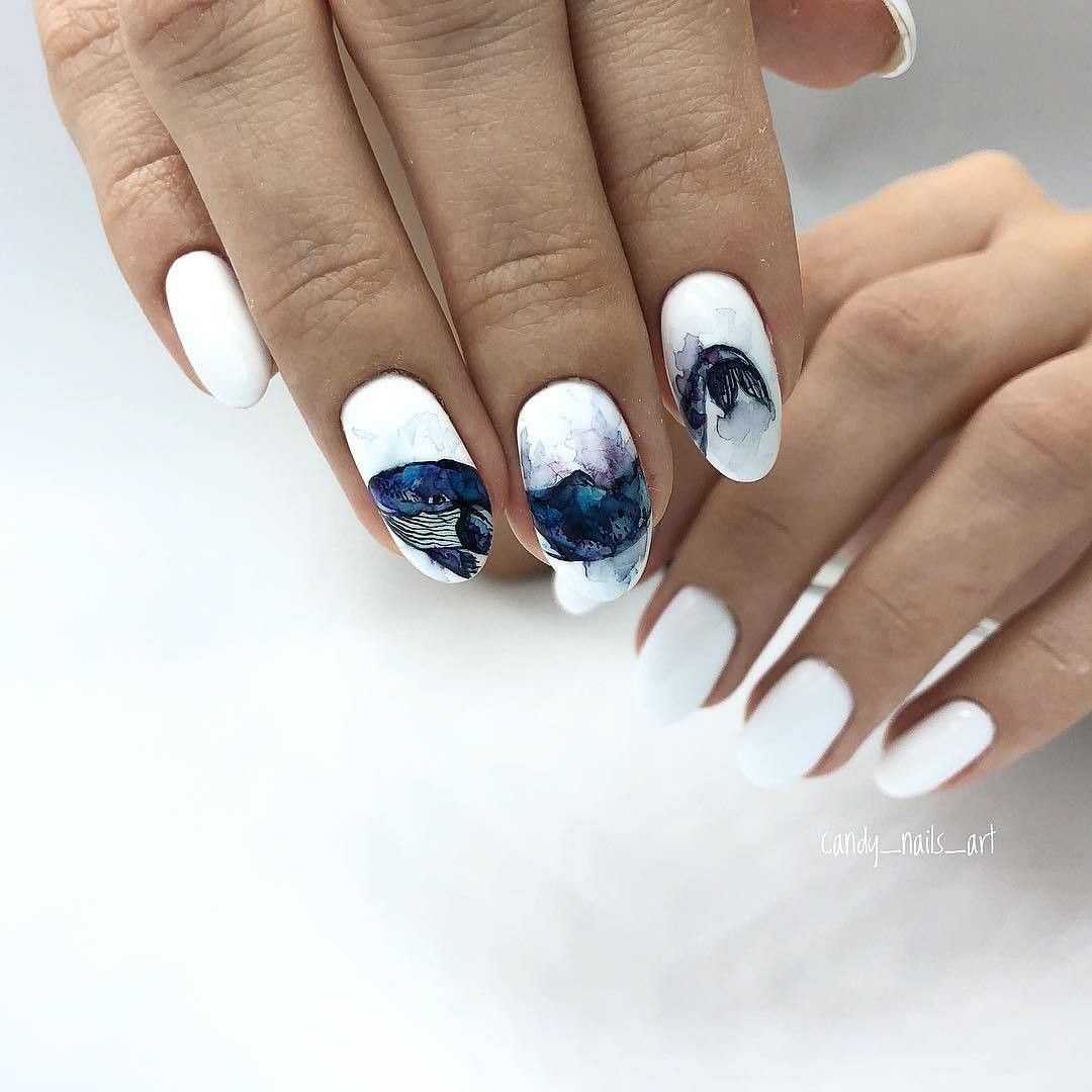 Напоследок оставили вам по-настоящему шикарный и неповторимый дизайн ногтей – маникюр с акварельными красками. Дизайн выполняется с помощью красок, поэтому выглядит непередаваемо воздушно и красиво.