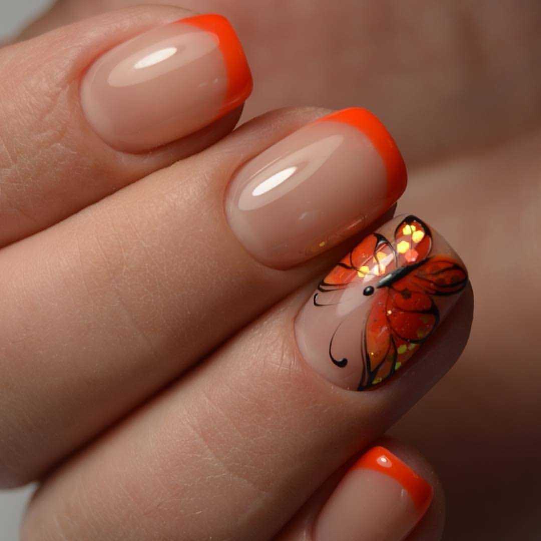 Оранжевый френч на лето 2020
