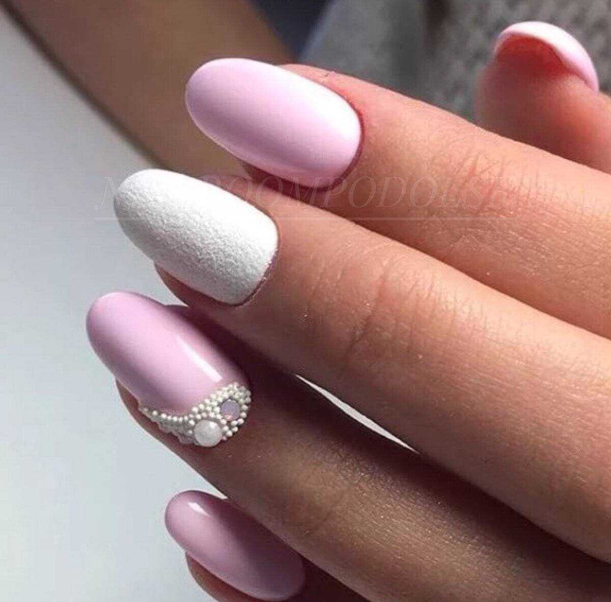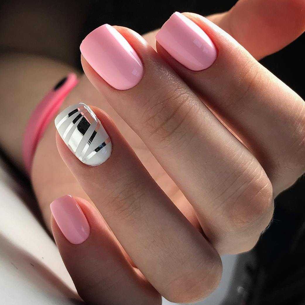 Все оттенки розового великолепно сочетаются с серебряным глиттером, жемчужной втиркой, гель-лаками с пайетками. В розовом цвете чаще всего выполняют французский и лунный маникюр, делают растяжку цвета с белым оттенком, заполняют один из ноготков прозрачными бульонками. В качестве дополнения используйте белый гель-лак. Его можно расположить на одном из ноготков в однотонном покрытии или создать с его помощью геометрический или абстрактный декор.
