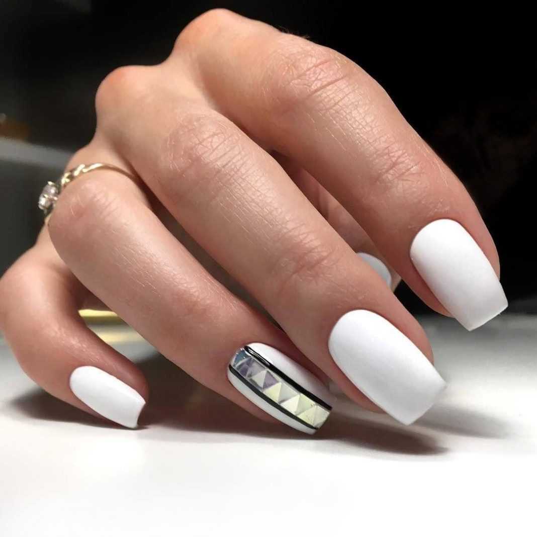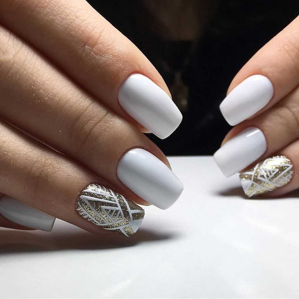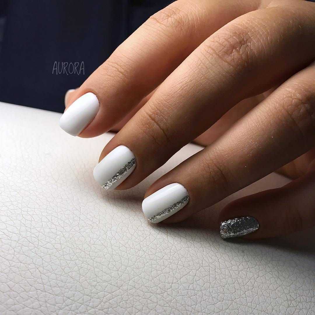 Белый цвет визуально увеличивает пространство ногтевой пластины, поэтому он отлично подойдет для декора коротких ноготков. В тренде однотонное покрытие белым цветом, дизайн с растяжкой блестками, использование гель-лаков, в состав которых входит шиммер или глиттер.