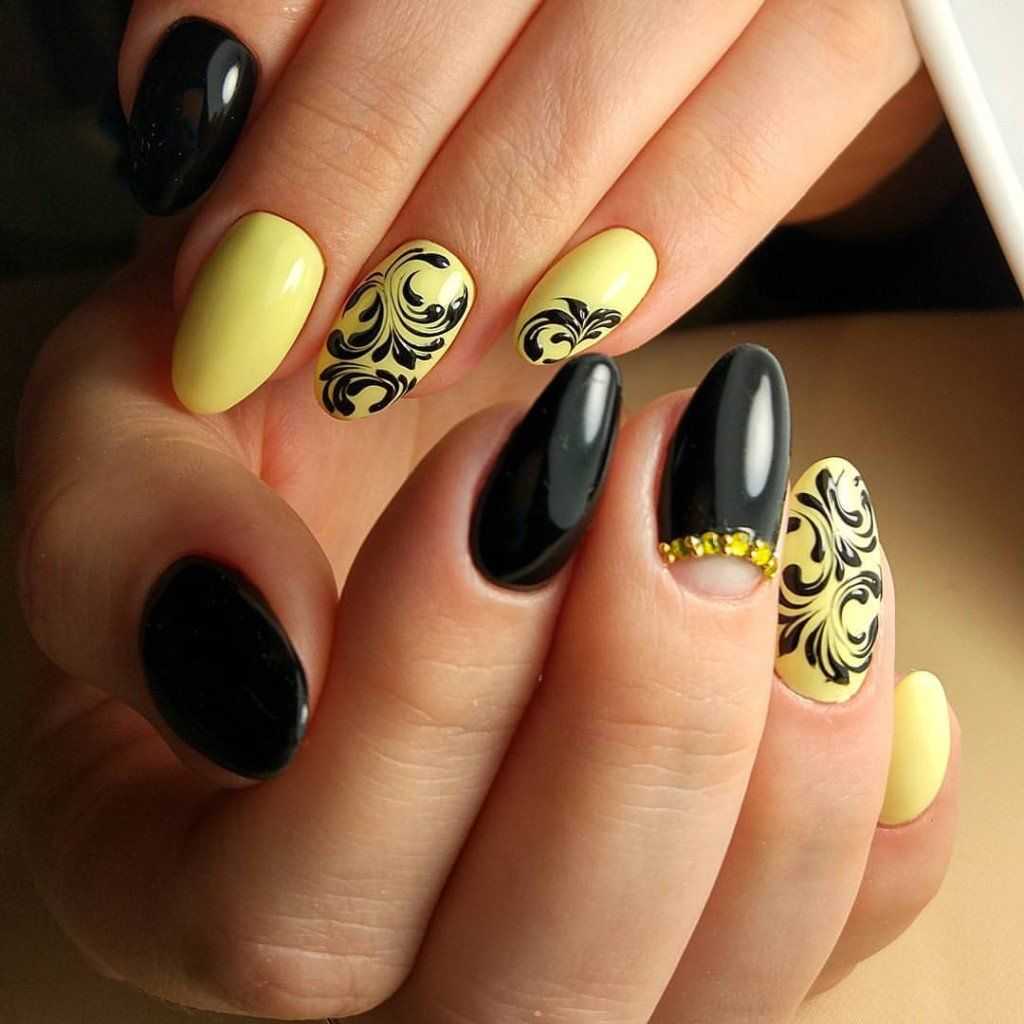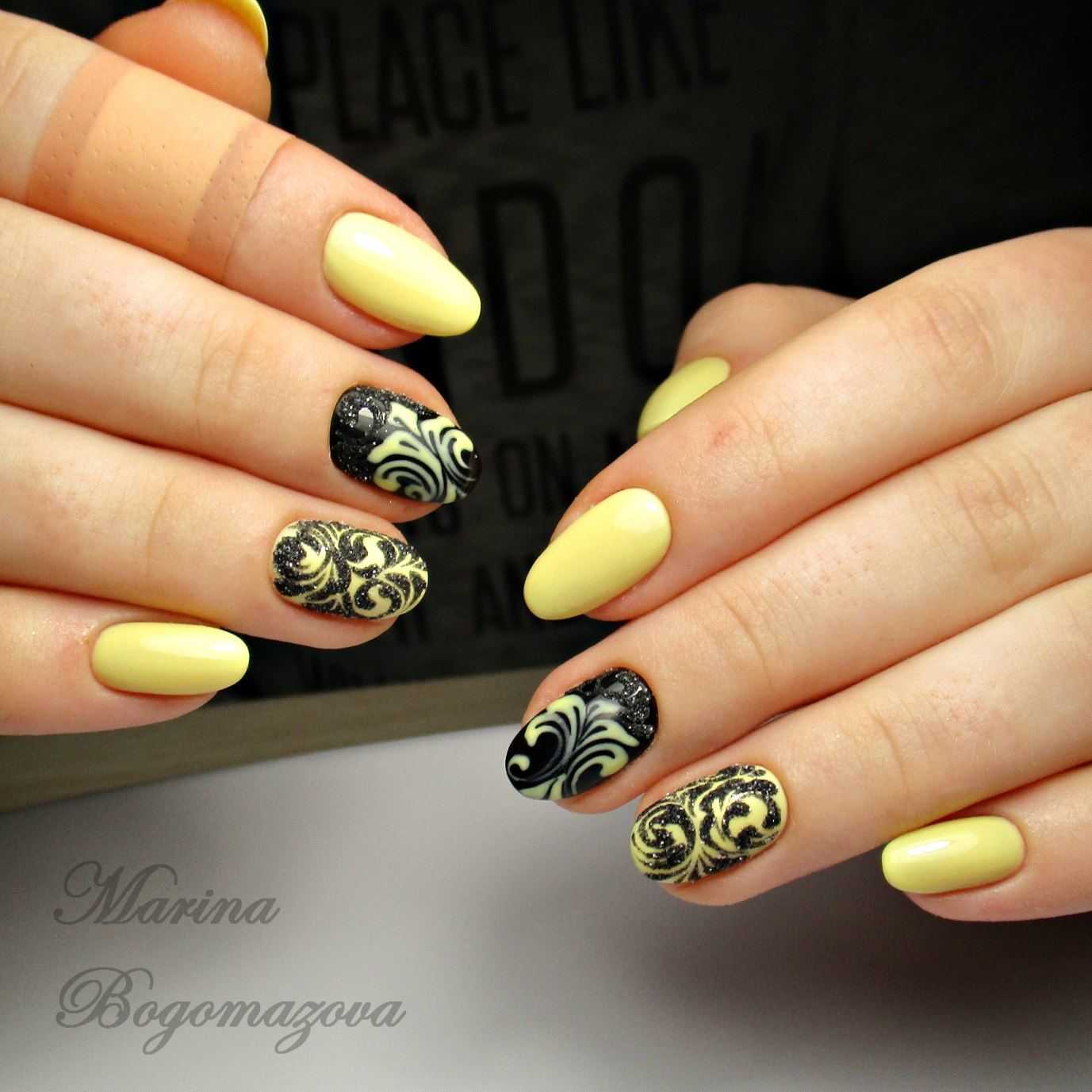 Кружевно оформление выглядит благородно и дорого. Такой дизайн смотрится привлекательно в торжественных и праздничных луках, но и в повседневных луках выглядит не менее красиво и ухоженно. Контрастность черного и желтого просто создана для того, чтобы создавать удивительной красоты ажурные узоры на ногтях, которые смотрятся значительно объемнее простого декора.