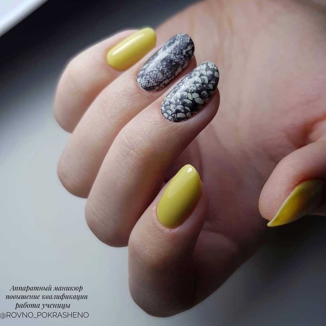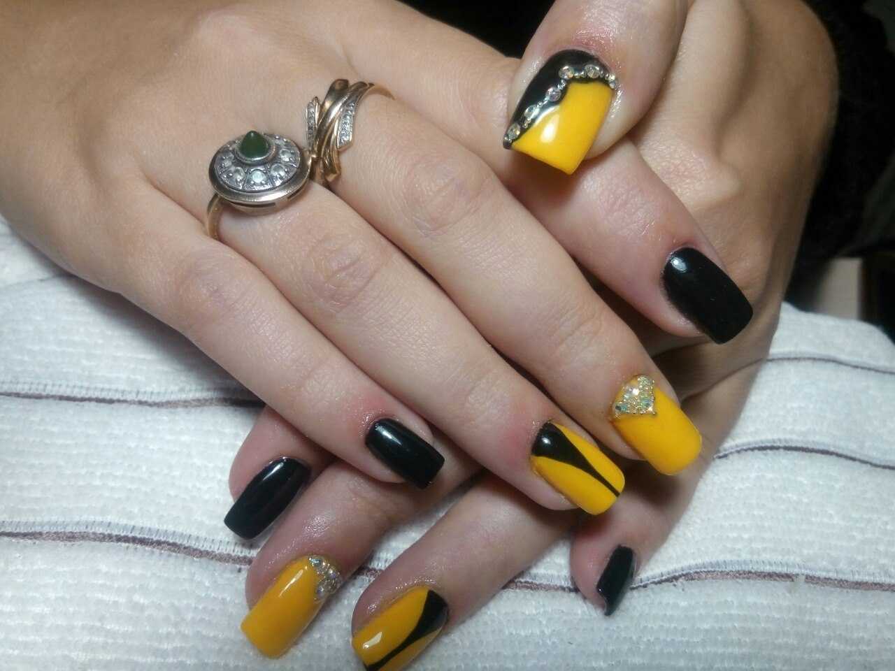 Отдельная тема – желтый маникюр с геометрическим дизайном: шахматный желто-белый или желто-черный рисунок, круги или горошки желтого цвета либо на желтом цвете, прямоугольники, очерченные тонкой линией и заполненные желтыми блестками, строгие четко очерченные линии вдоль или поперек ногтевой пластины. И это далеко не полный перечень вариантов дизайна. Ваше настроение, вдохновение и фантазия всегда могут создать новый дизайн или даже тренд.