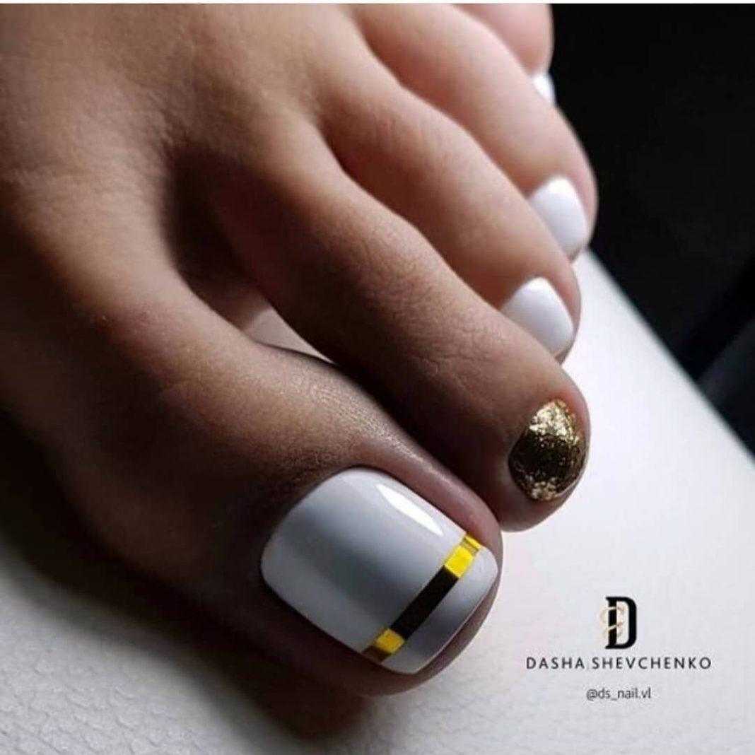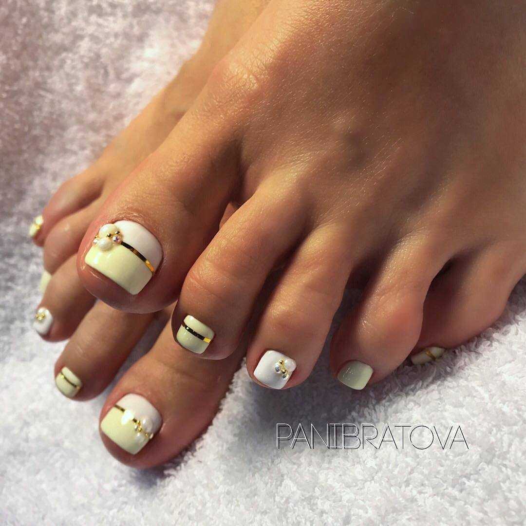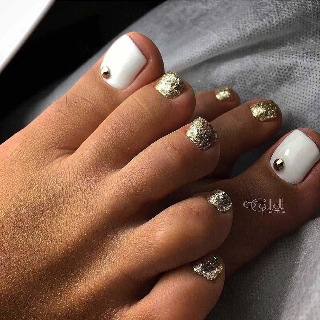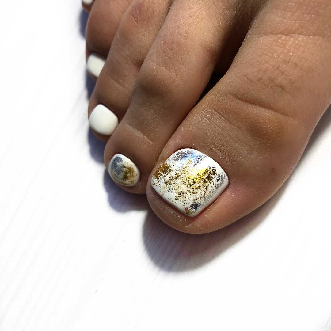#4 Золотой педикюр с белым: нежное и женственное сочетание на каждый день
