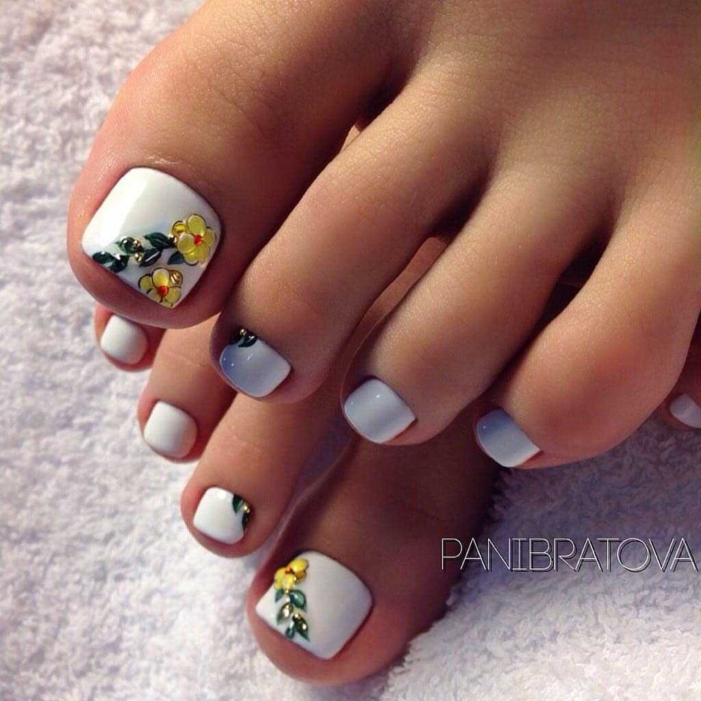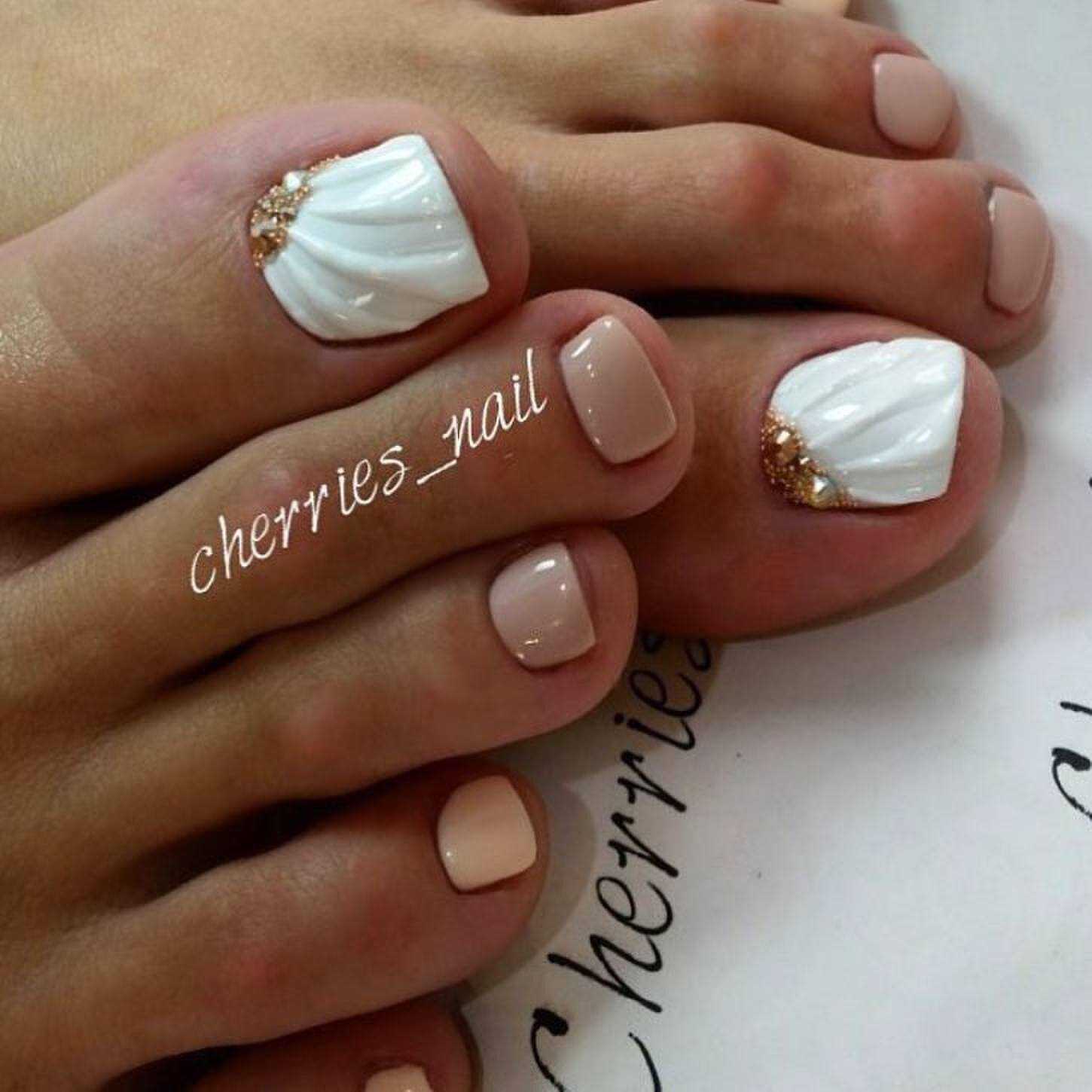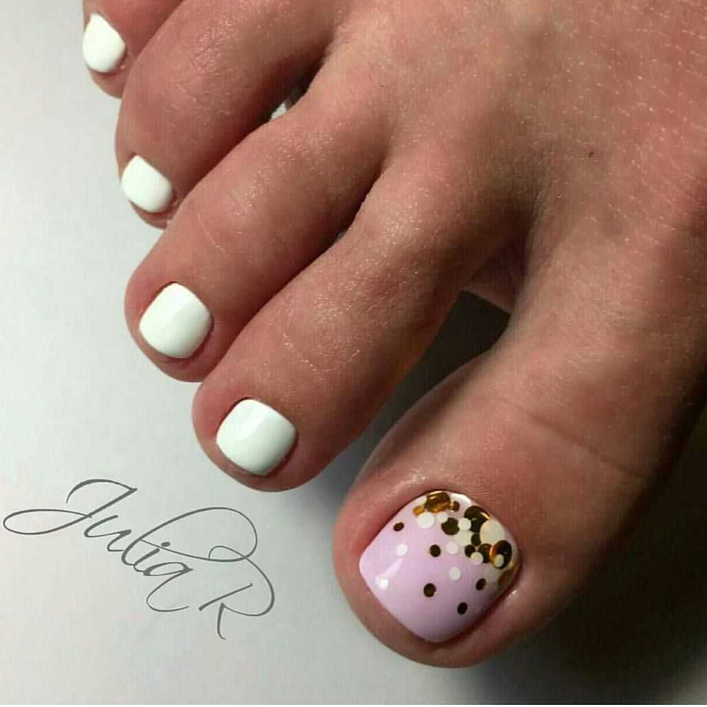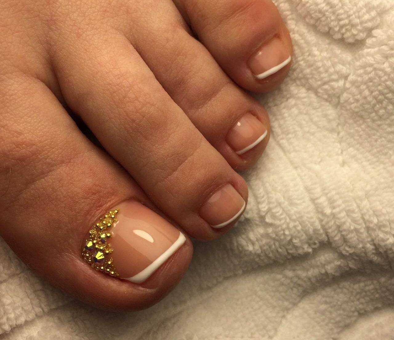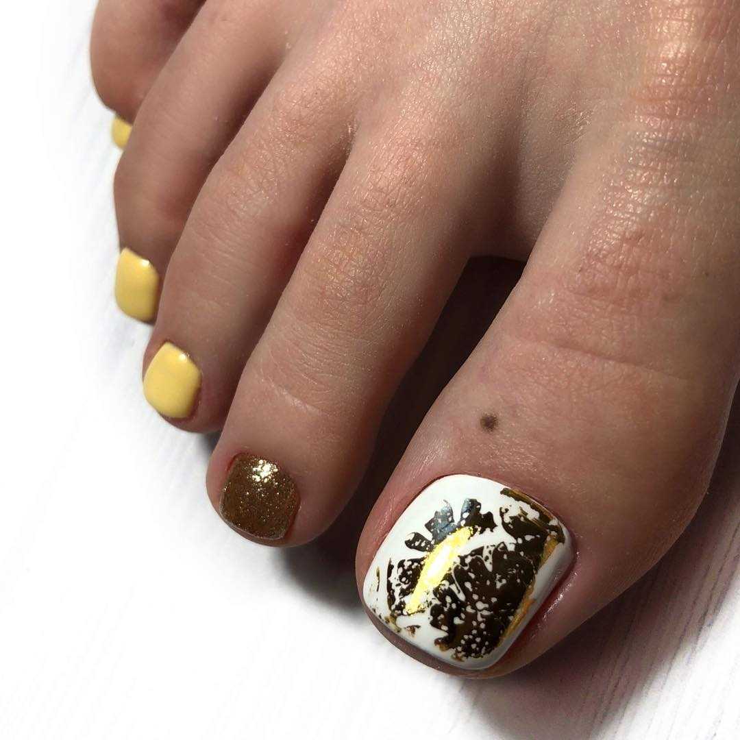 #4 Золотой педикюр с белым: нежное и женственное сочетание на каждый день