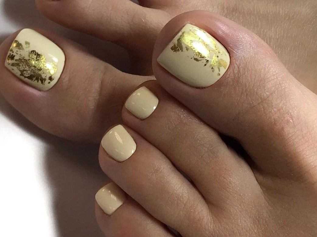 Золотой педикюр: солнечные переливы