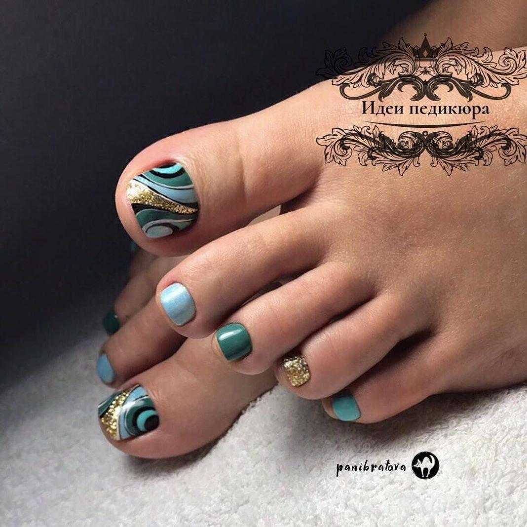 #5 Яркий педикюр с золотом: стильные летние нейл-арты