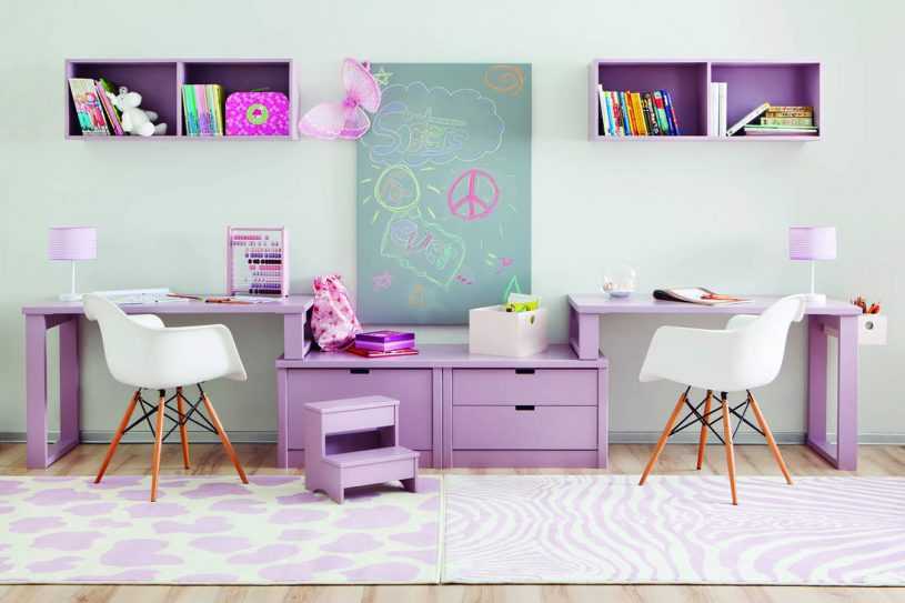 Обустроить детскую для одного ребёнка бывает сложно, а что уж говорить о комнате, в которой проживает 2-3 детей, особенно, если они разного возраста или пола. Оформляя комнату для ребят, лучше выбирать и располагать письменный стол во всю стену у окна. Существует несколько вариантов размещения рабочих мест для двух детей-школьников. При этом нужно помнить, что у каждого из детей должно быть достаточно свободного пространства для выполнения домашних заданий, работы на компьютере или занятий рукоделием.
