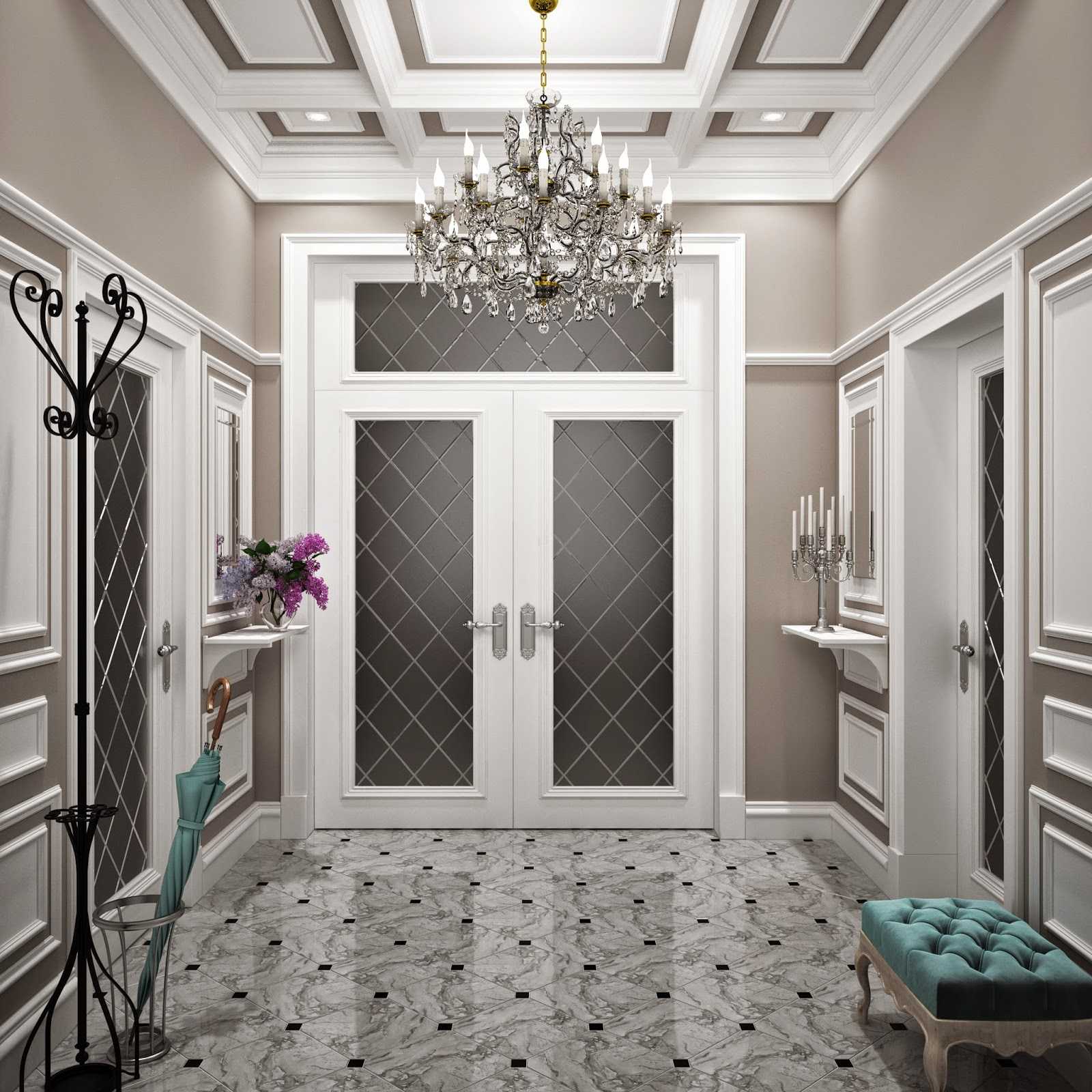 В интерьер небольшой прихожей при желании можно «вписать» и классику. В таком случае воспользуйся деревянной мебелью в белых тонах, молочными цветами отделочных дорогих материалов. Роскошь стиля подчеркни внедрением позолоты и настенной лепнины, а довершит образ хрустальная потолочная люстра.