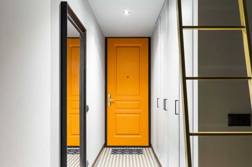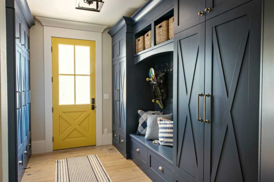 Разнообразные двухцветные комбинации, например оранжевый с синим, коричневый с белым или желтый с фиолетовым или другие сочетания, позволяют прихожей приобрести стильный и современный облик.