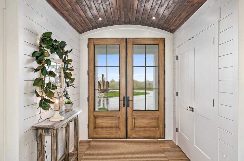 - Современный стиль. Данный стиль требует баланса и предполагает чувство меры. Декоративная штукатурка, кирпичная кладка, деревянные, стеклянные панели или модели, которые будут имитировать мрамор, гранит или другие породы камня, станут прекрасным решением для современного дизайна.
