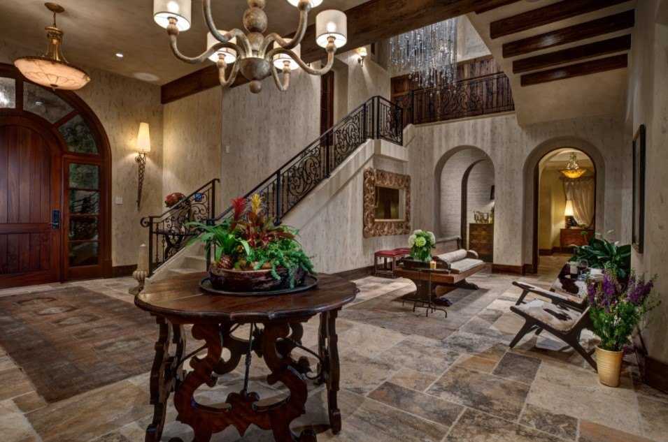 Занимаясь отделкой прихожей, не следует использовать камень во всем помещении. Однако и его обрывочные фрагменты без поддержки другими материалами смотрятся крайне странно. Отделать камнем лучше одну из стен. Можно также имитировать вышедшую наружу старинную кирпичную кладку, скомбинировав камень со штукатуркой «под бетон».