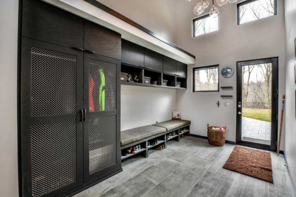 В таких помещениях максимально используют их высоту — устанавливают навесные антресоли, стеллажи, узкие высокие шкафы-обувницы. Можно придумать различные идеи дизайна прихожей, даже малогабаритной.