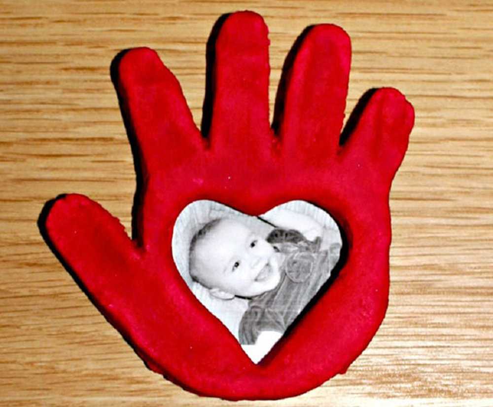 Из этого куска теста мы и будем делать нашу рамку для фотографии. Тесто нужно раскатать в толстый лист и ножом вырезать из него прямоугольник, больший на 4 см с каждого края, чем наша фотография. В середине рамки вырезать отверстие для фотографии. Затем из теста можно сделать декорации, напимер, шарики и ленточки.