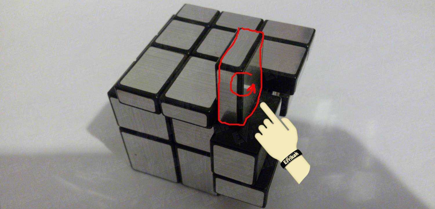На пятом этапе разворачиваем боковые кубики третьего слоя.