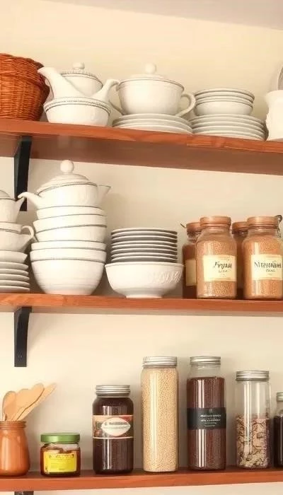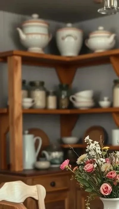 Открытые полки – еще одна важная черта стиля кантри. На них можно разместить винтажную посуду, баночки со специями, вазы с цветами и другие декоративные элементы. Кованые элементы – люстры, подставки для посуды, ручки на мебели – придают кухне особый шарм. Винтажная посуда – тарелки с цветочным рисунком, глиняные горшки, старинные чайники – создают атмосферу деревенского дома. В 2025 году акцент делается на качественную имитацию натуральных материалов, если их использование невозможно.