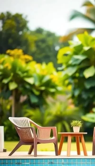 Пластик – доступный, прочный и водостойкий вариант. Широкая цветовая гамма позволяет подобрать мебель под любой дизайн. Важно выбирать пластик с УФ-защитой, чтобы избежать выцветания и продлить срок службы изделия у бассейна.