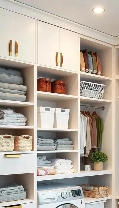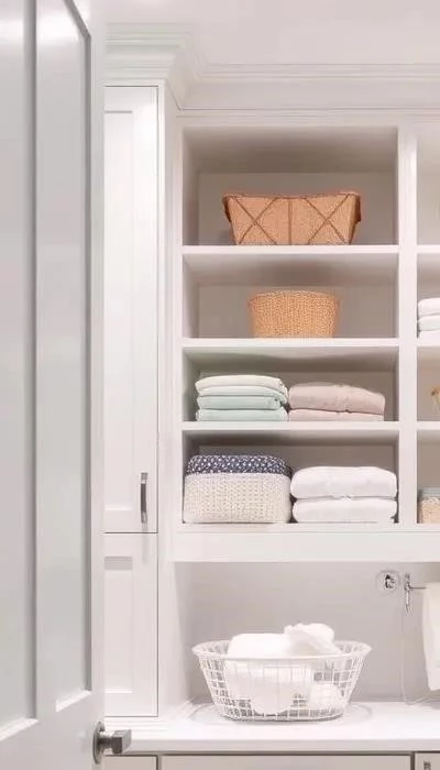 Сочетание открытых полок и закрытых шкафов – это идеальный баланс между функциональностью и эстетикой в прачечной. Открытые полки обеспечивают быстрый доступ к часто используемым предметам, таким как моющие средства или смягчители ткани. Закрытые шкафы же скрывают вещи, которые не должны быть на виду, создавая более аккуратный вид. Такое решение позволяет организовать пространство эффективно и стильно.