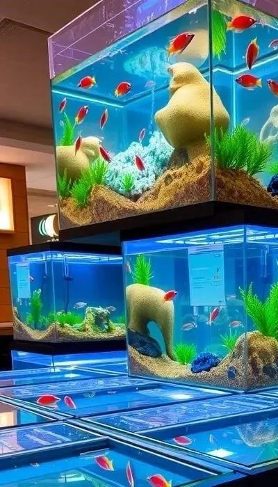 5. Аквариумы: Привлекают внимание покупателей и создают атмосферу уюта. Плюсы: эстетичный внешний вид, возможность демонстрации рыб и растений. Минусы: требуют сложного ухода, высокая стоимость. Рейтинг: «AquaWorld» (стеклянные, от 15 000 руб.), «BioDesign» (с фильтрацией и обогревом, от 20 000 руб.), «OceanLife» (большие аквариумы, от 40 000 руб.).