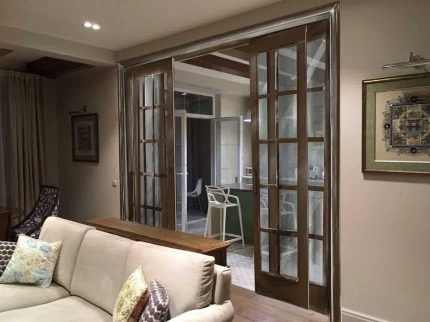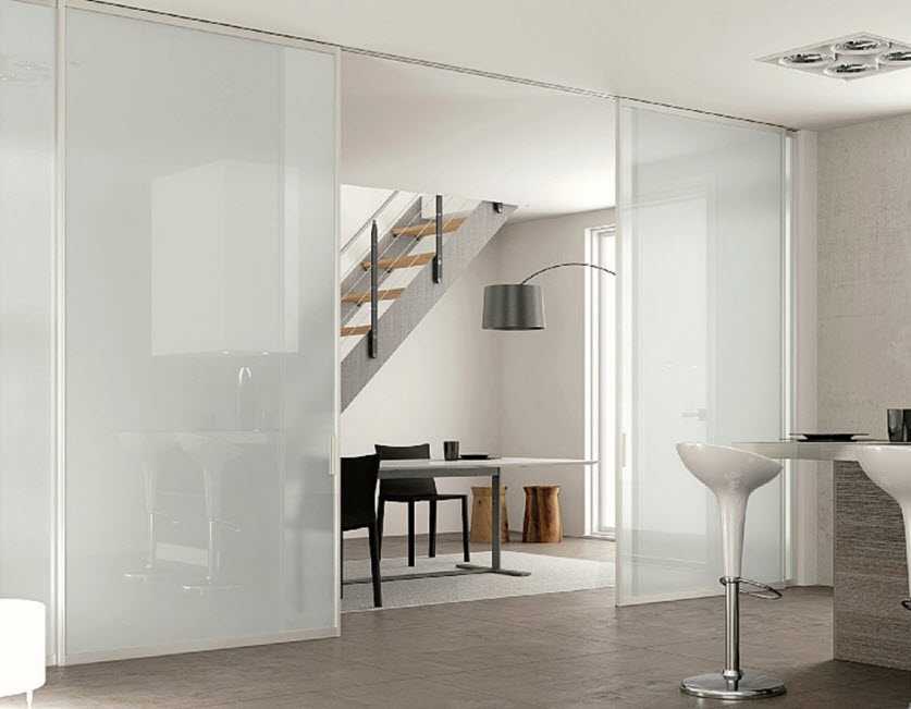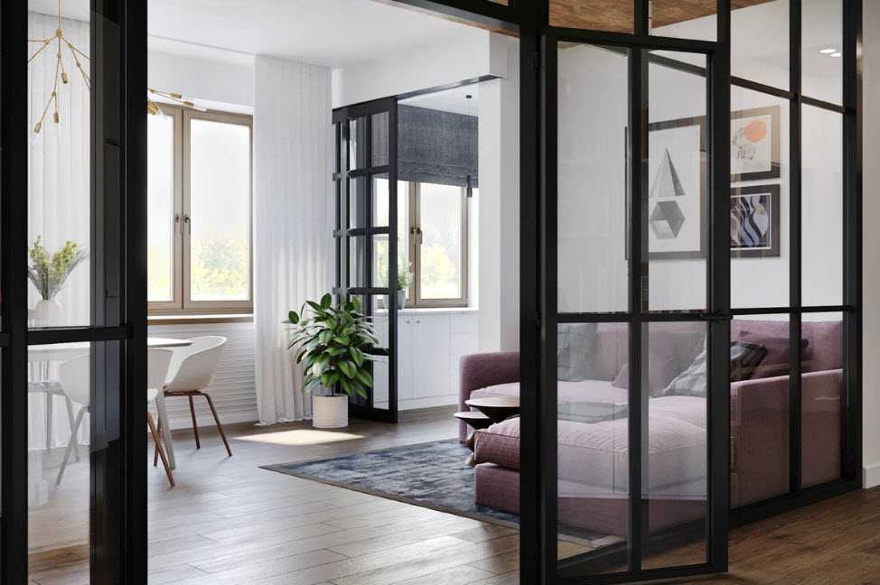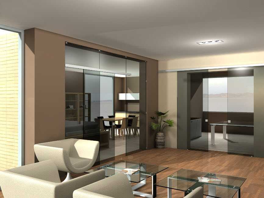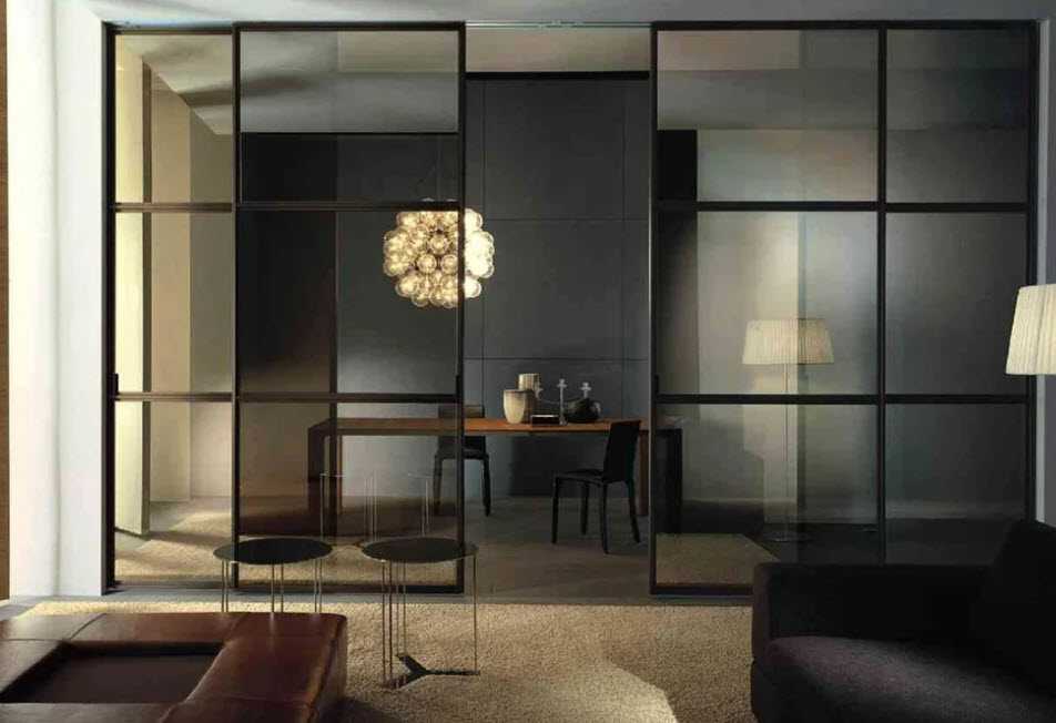 Ставят для разделения отдельно взятых комнат. Выбирают удобные конструкции, подходящие под дизайн. Часто используют материал стекло.