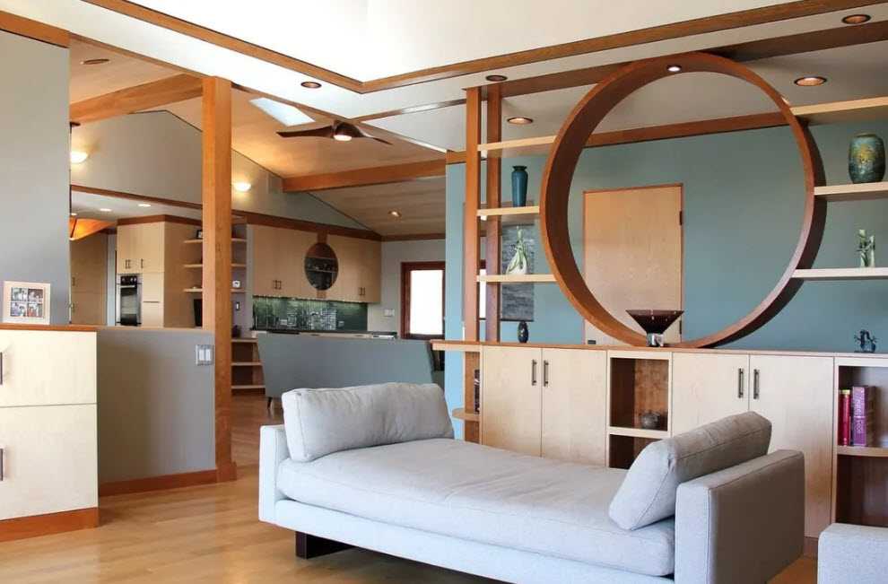Красивая декоративная перегородка из дерева для зонирования комнаты впишется в любой стиль. Даже в хай-тек направлении дерево можно использовать в черном цвете или необычной форме, окрашивать его в другие несвойственные оттенки.