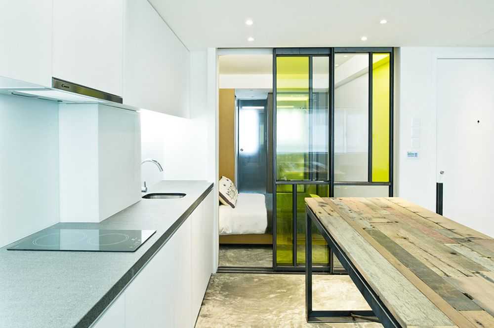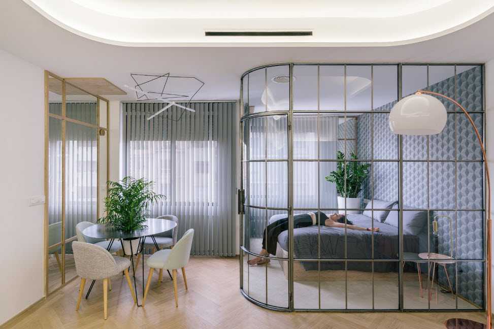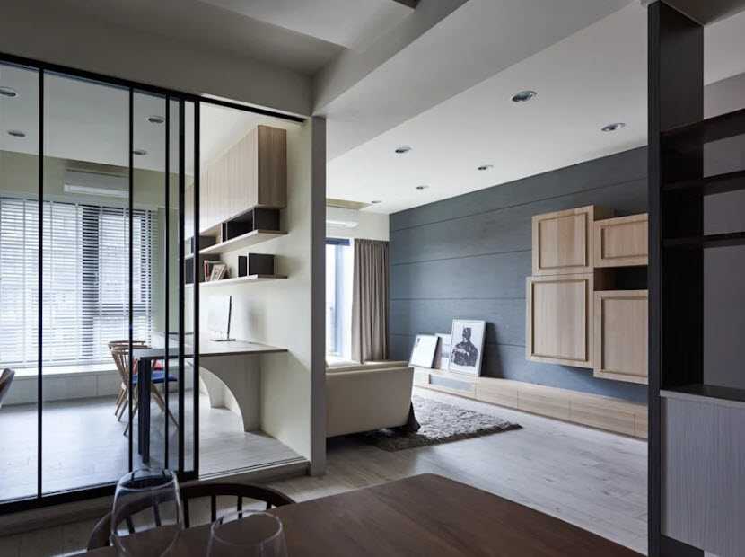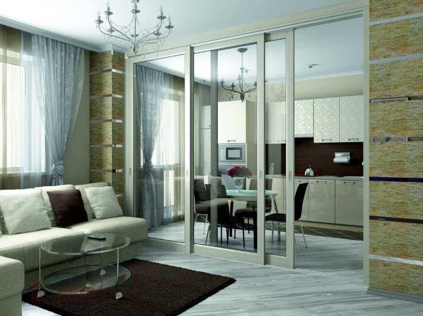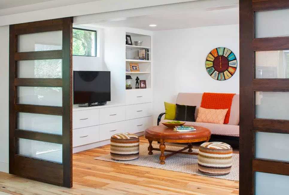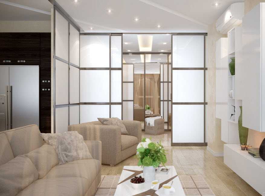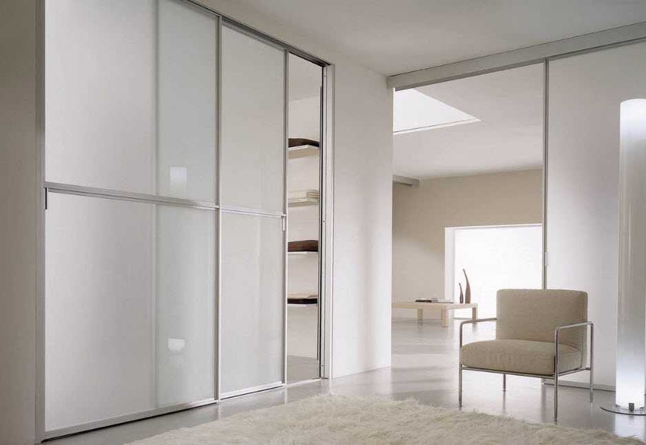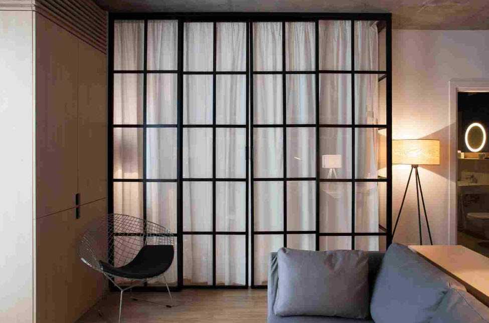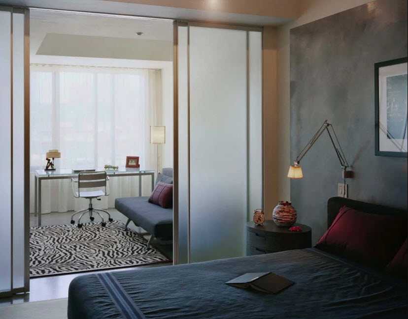 Для зонирования в ход пойдут двери-купе, которые мы привыкли видеть в специальных шкафах.
