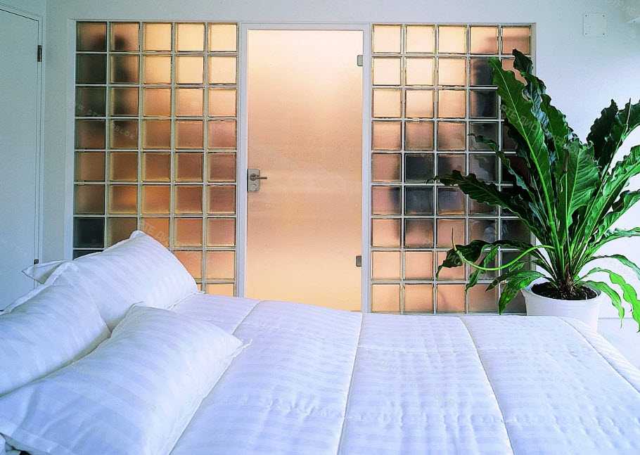 При помощи стеклоблоков можно полностью отгородить зону. Например, спальное место, ванную комнату, кухонный уголок.