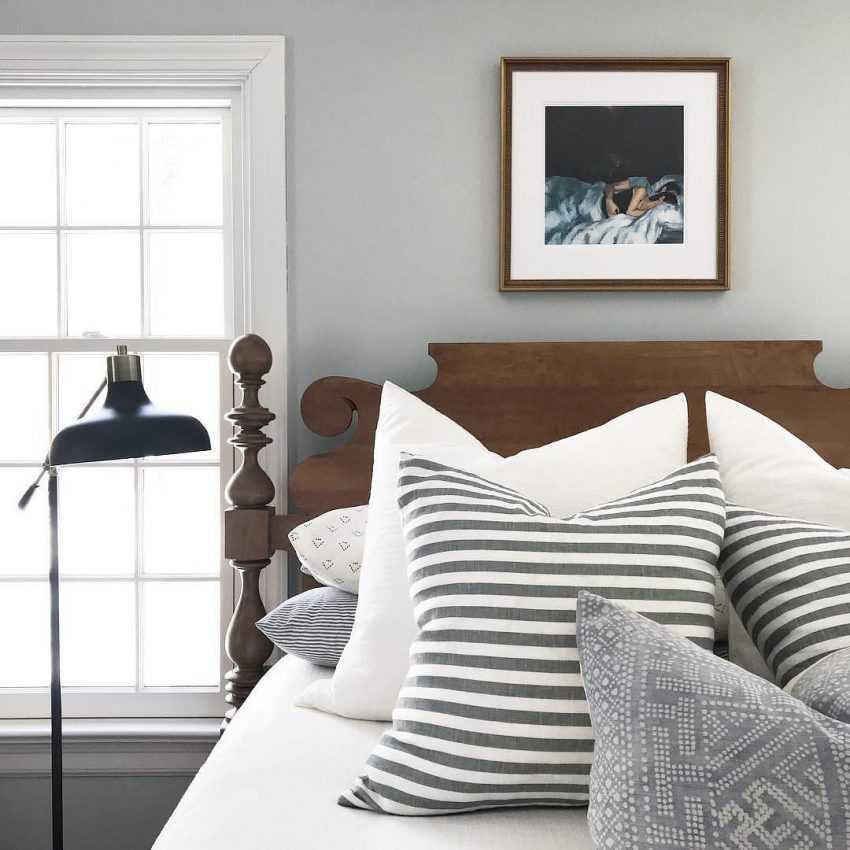В любой спальне стоит уделить внимание и декору. Его не должно быть много, чтобы не возникало проблем при уборке, однако совсем без него интерьер может выглядеть голым