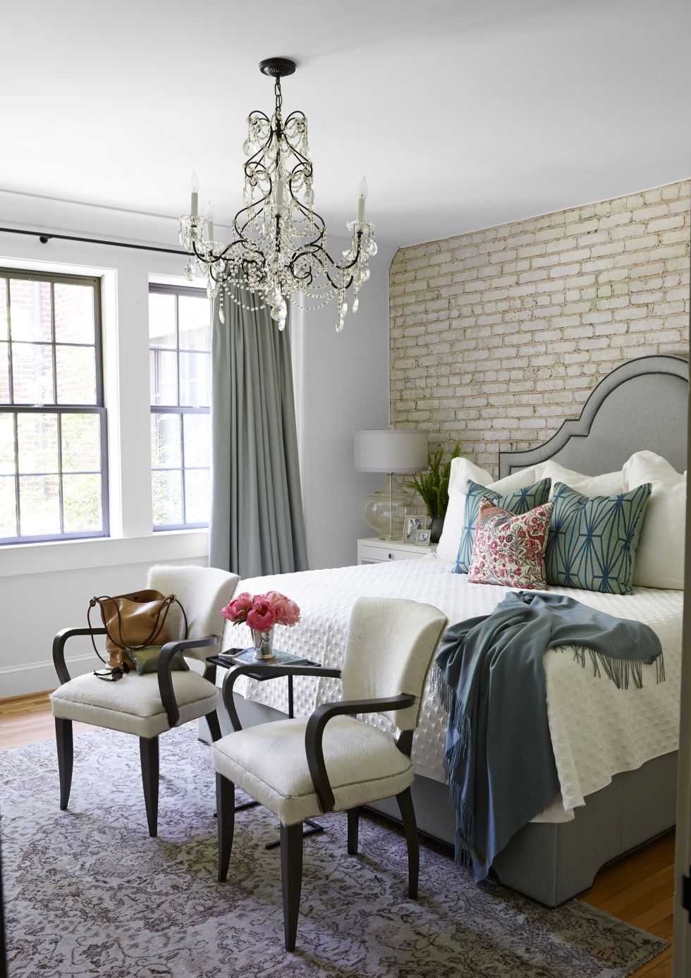 - Кирпич. Имитация кирпичной кладки (или настоящая кладка, если живете в кирпичном доме) — прием, который не выйдет из моды, наверное, никогда.