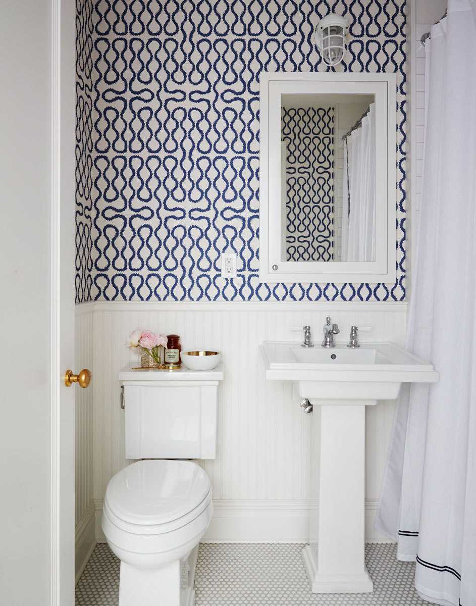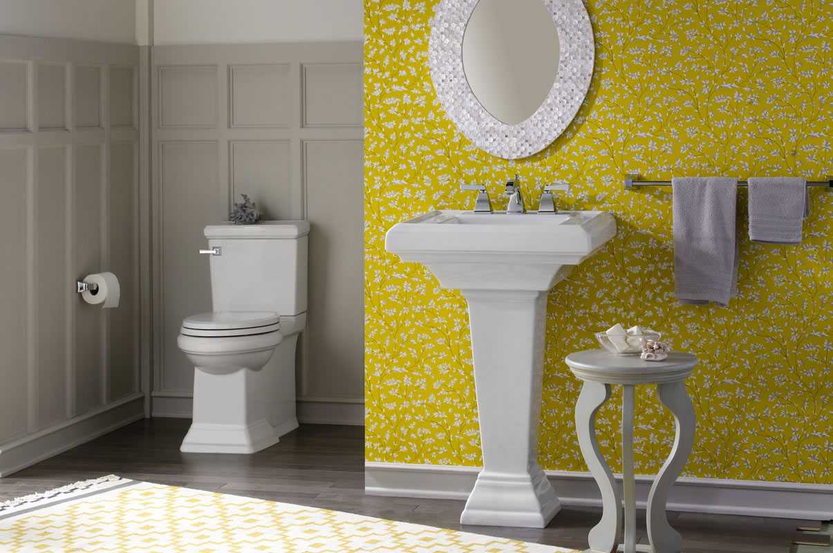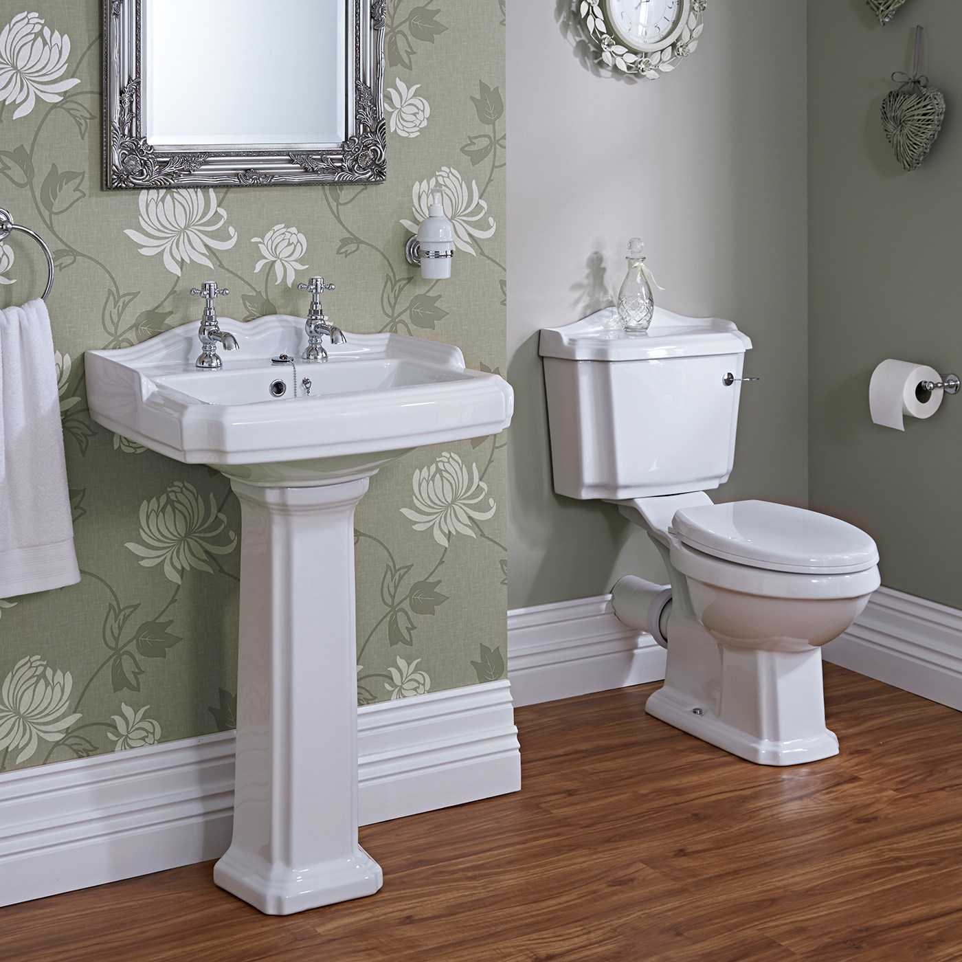Вспоминая аристократов, бросаются в глаза их ванные комнаты: с массивными зеркалами, сантехникой с отделкой под золото, картинами и золотистой фурнитурой. Это классический стиль. Вы можете его реализовать и в маленьком туалете, выбрав подвесной унитаз и раковину. Они не будут загромождать пространство, а вы повесите на стены картинами или поклеите узорчатые обои.