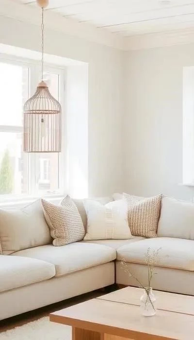 Для обивки мягкой мебели (диванов, кресел, пуфов) идеальны лен, хлопок, шерсть. Эти ткани приятны на ощупь, «дышат», обеспечивая комфорт. Льняные и хлопковые чехлы прекрасно смотрятся в бежевых и серых тонах, создавая легкость. Шерсть крупной вязки добавит тепла и объема для уютной зоны. Выбирайте обивку с выраженной, но не кричащей текстурой: рогожка, букле, вельвет в приглушенных цветах. Такие материалы эстетически привлекательны и практичны.