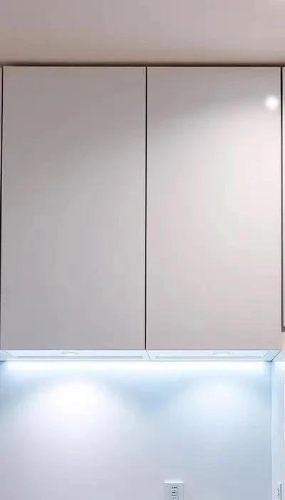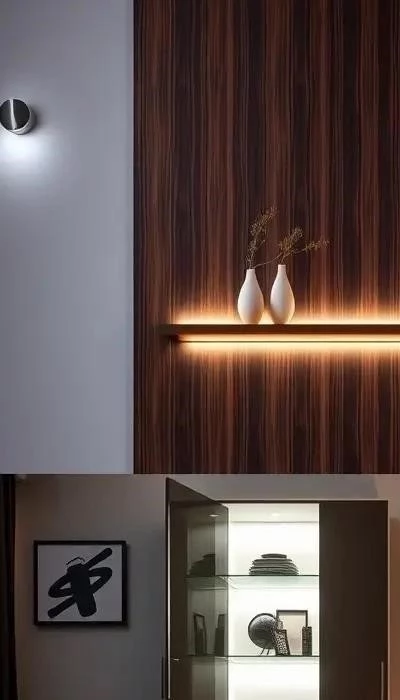 Накладное освещение, напротив, устанавливается непосредственно на поверхность мебели. Это могут быть компактные светодиодные планки или миниатюрные споты, легко крепящиеся под верхними кухонными шкафами, над рабочими поверхностями или внутри гардеробных. Главное преимущество — простота и скорость монтажа, что делает его отличным решением для тех, кто ищет легкие в реализации варианты