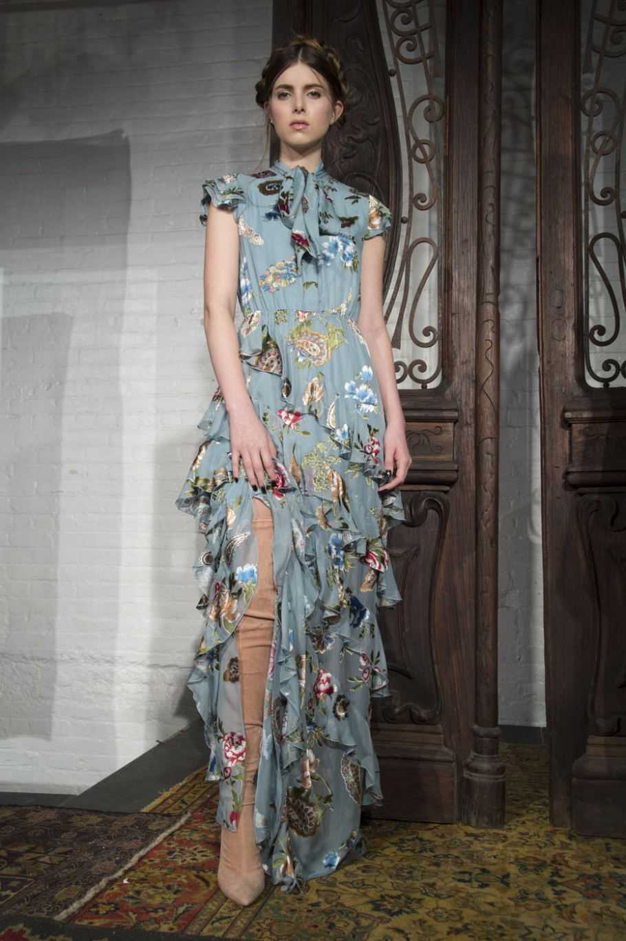 Цветочный принт входит в число модных трендов 2018-2019. Нежный и романтичный, он украсит как короткое, так и длинное платье в пол. Милые варианты были продемонстрированы брендом Blumarine. Платья для девушек от этого дизайнера – неуловимая грань между роковой женщиной и ангелом.
