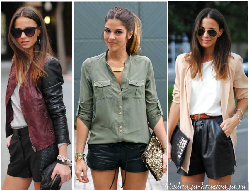 Натуральная кожа или экокожа. Этот вариант шортов особенно хорош на прохладный летний вечер или для офиса. Если выбираете шорты для делового образа, лучше, если их длина будет средней. Но в целом ориентируйтесь на дресскод конкретно в вашей компании.
