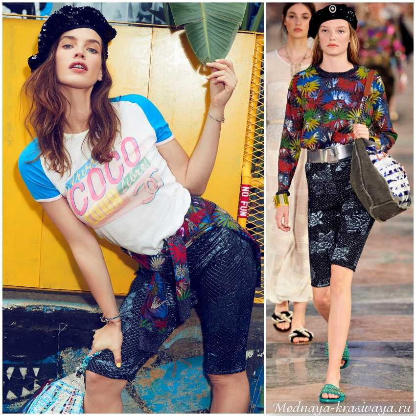 Модные женские шорты представлены в разных фасонах. Это и облегающие велосипедки, и строгие бермуды, и свободные «мамины» модели. Они доходят до колена или заканчиваются чуть выше.