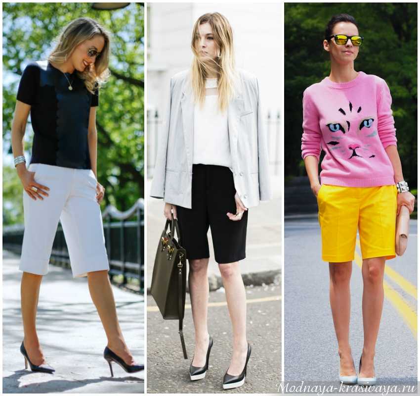 Длинные шорты летом для более официальных случаев. Бермуды, велосипедки, джинсовые бриджи — буквально на любой вкус. Подбирайте те шорты, которые больше всего подходят вашей фигуре или соответствуют мероприятию.
