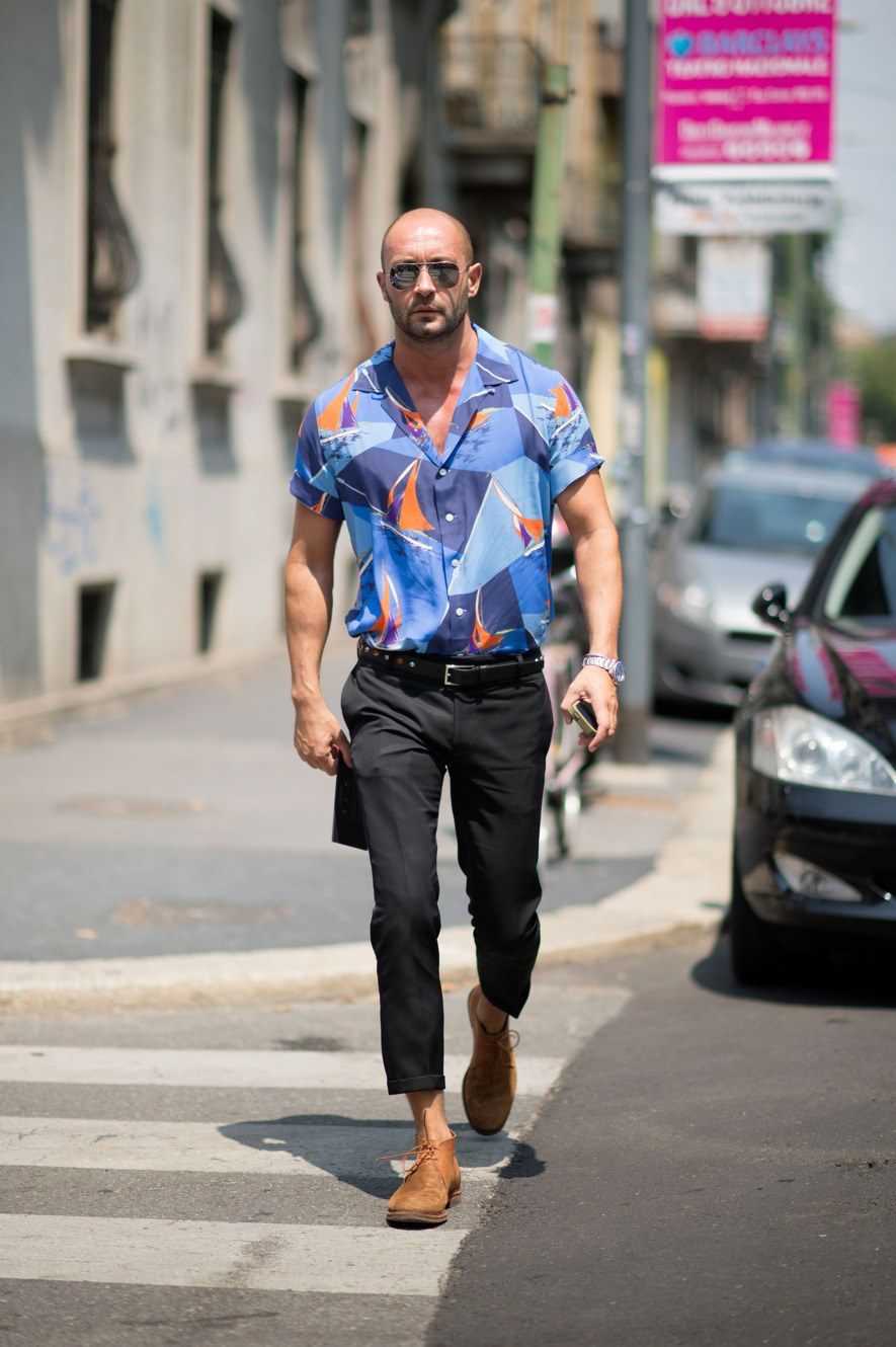Выбирая рубашку с принтом, в первую очередь обратите внимание на цвет. Откажитесь от слишком ярких и пестрых принтов в стиле аля «гавайское лето» или «кислотные» варианты в салатово-розовых и голубых тонах