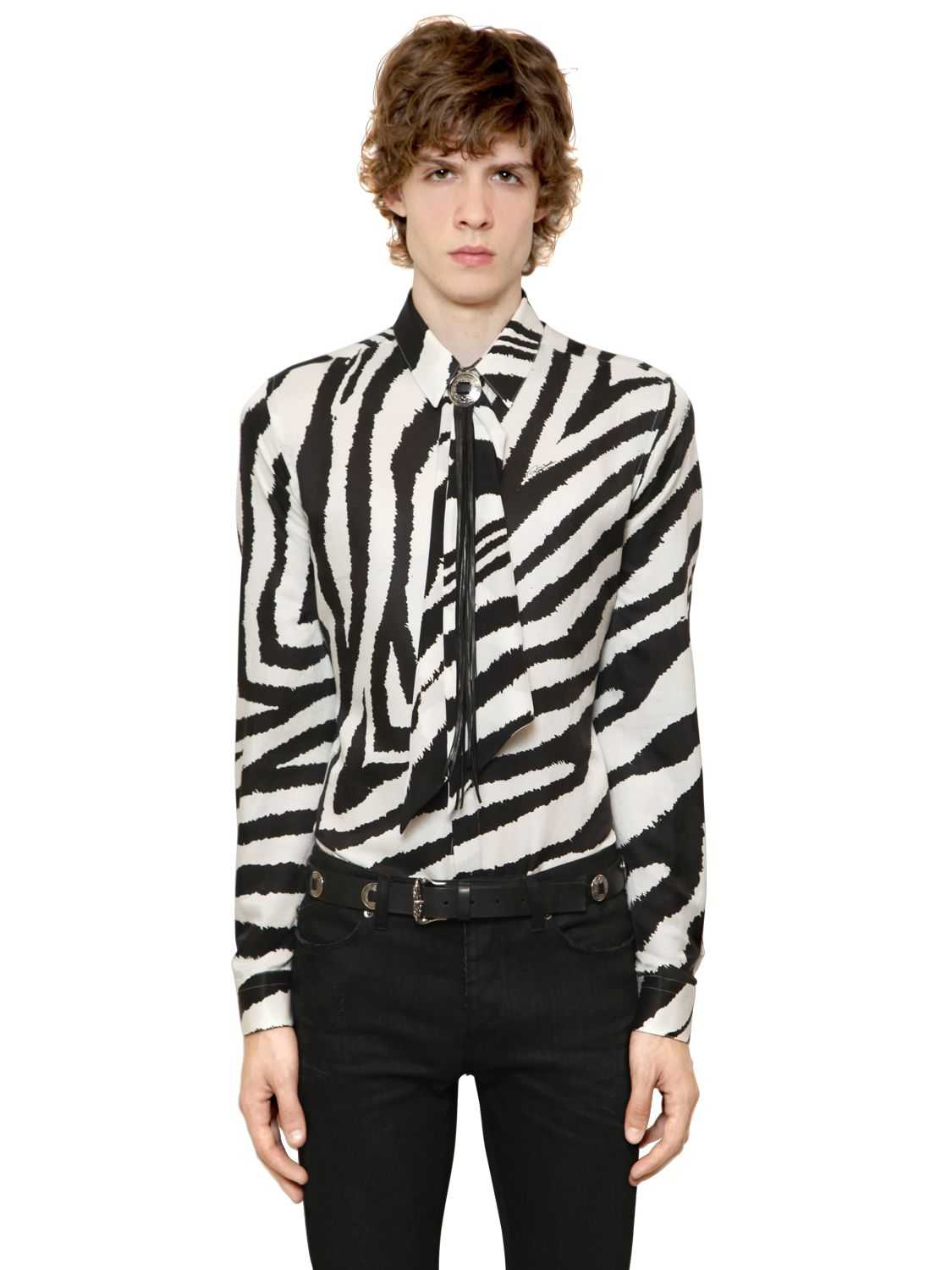 Принты «зебра» или «леопард» – выбор самых смелый. Сочетание такой сорочки с однотонными брюками серого или коричневого цвета будет смотреться эффектно и стильно.