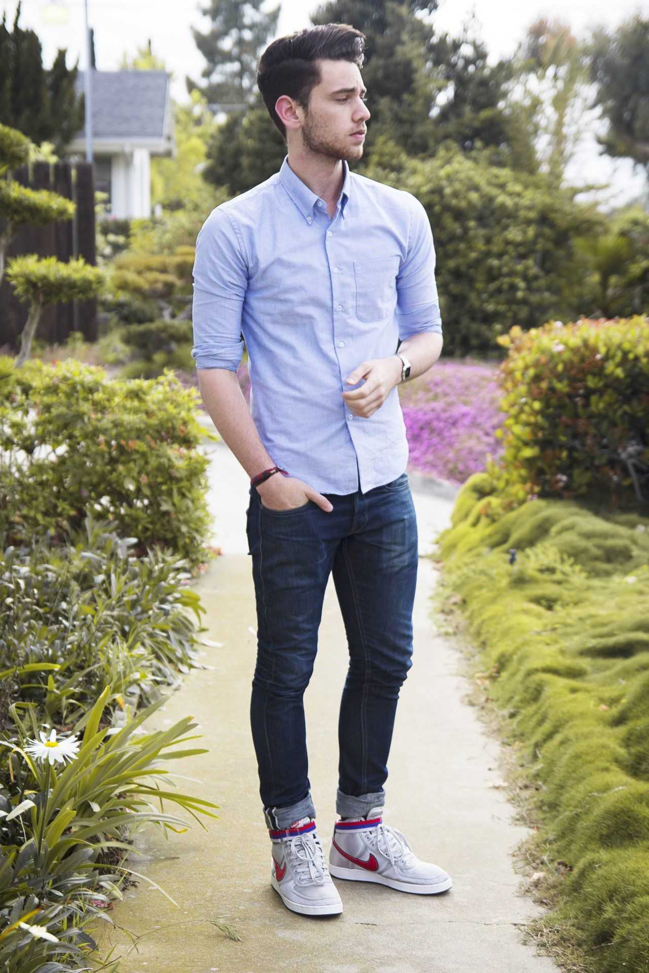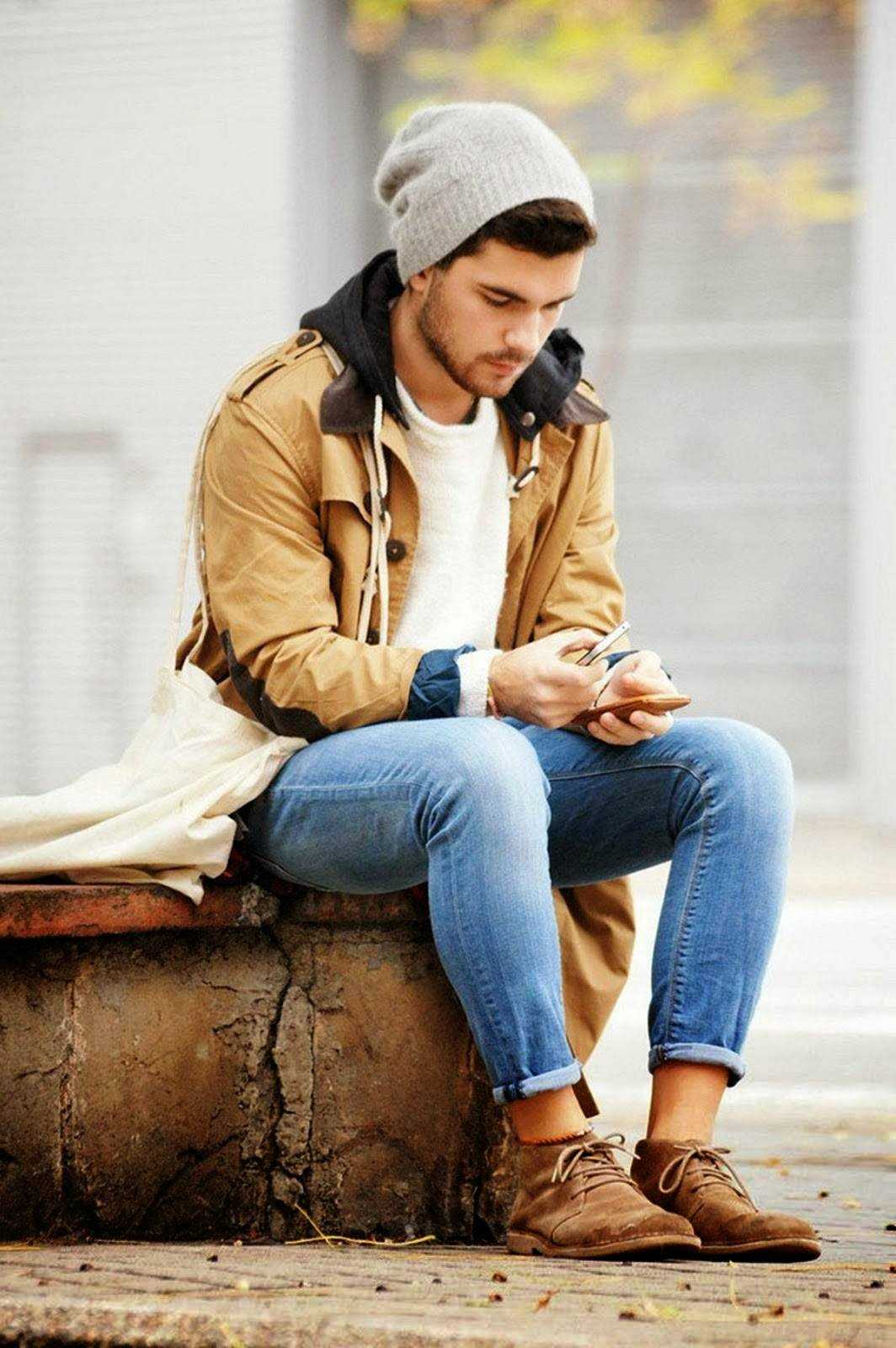 Брюки с подворотами или подрезанным краем по-прежнему популярны среди молодых людей. В сочетании с кедами на голую ногу они смотрятся современно и стильно. Модельеры предлагают парням создать стильные брюки с подворотами самостоятельно. Достаточно отрезать подол от старых джинсов и слегка размохнить края.