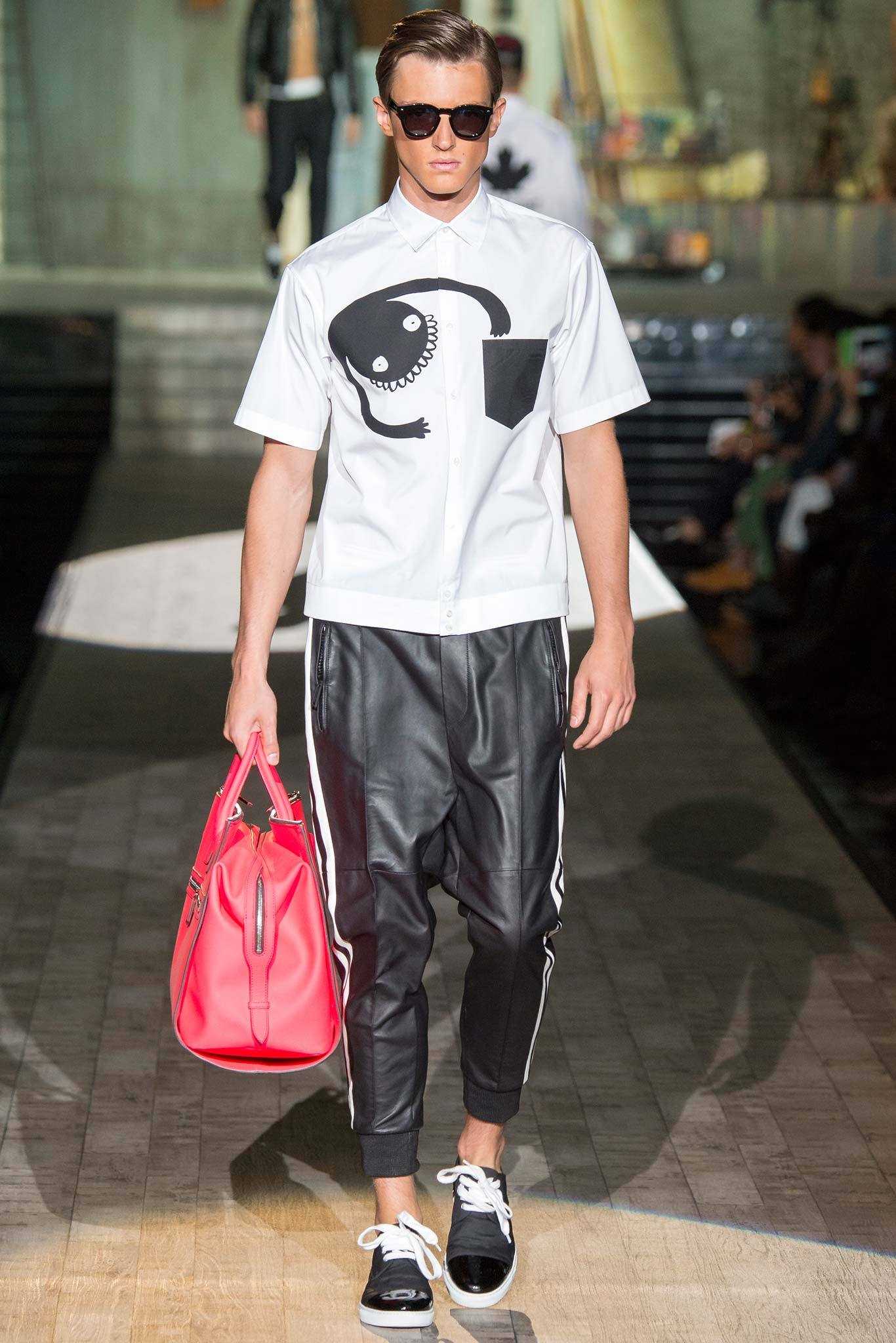 Новинка сезона – кожаные брюки. Они хорошо выглядят только на стройных парнях с подтянутой фигурой. В сочетании с кожаной курткой, клетчатой рубашкой или майками-оверсайз такие брюки будут лучшим вариантом для образов на каждый день.