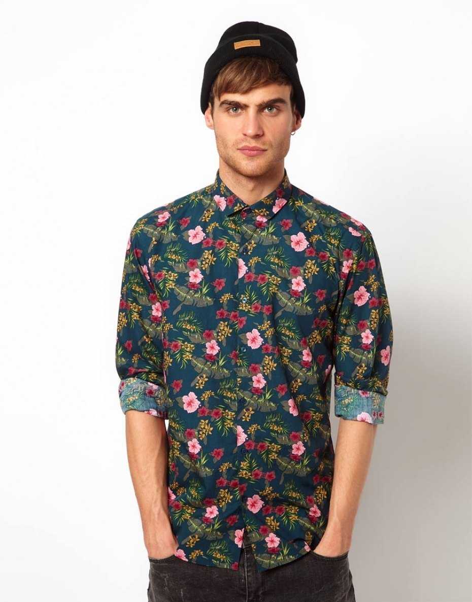 Грамотно включенный в дизайн рубашки модный яркий принт выглядит даже оригинальнее и интереснее однотонных собратьев.