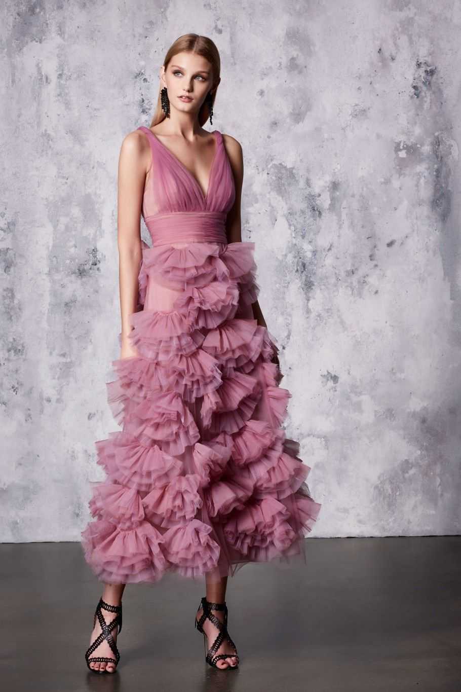 Дизайнеры отдали предпочтение моделям с длиной до пола и миди. Кажется, что разница несущественна, но на самом деле она играет ключевую роль. Выбрав длинное платье в пол, как у Bibhu Mohapatra, вы можете создать по-настоящему царственный образ, длина миди менее претенциозна, но тоже не лишена своего очарования.