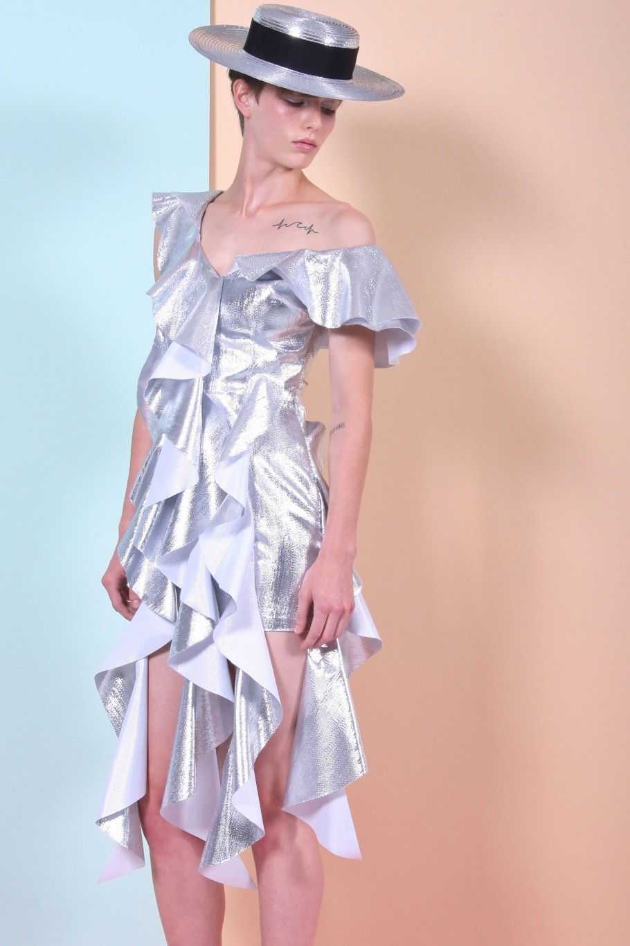 Оборки в сочетании с гипюром и полупрозрачными материалами создают очень нежный и романтичный образ. Если хочется чего-то более экстравагантного, выбирайте платье цвета «металлик», как у Christian Siriano.
