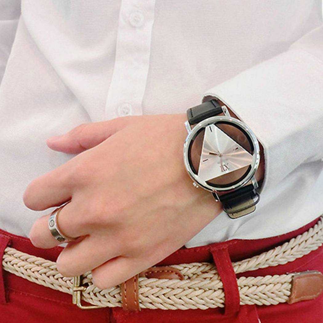 - Оригинальный циферблат также считается актуальным. Классические круглые формы перестают быть популярными. Желательно выбирать квадратные, овальные, треугольные, прямоугольные модели.